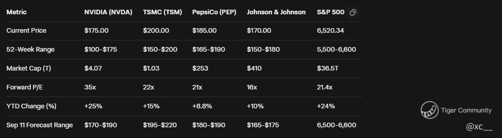 On September 11, 2025, NVIDIA’s $4.07 trillion valuation outpaces all but four nations amid a 6,520.34 S&P 500 rally. A 10-15% rise to $192.50-$201.25 is possible this week if $170 holds, with a $200 target (14% upside) by year-end if AI demand persists. A 10-15% dip to $148.75-$157.50 threatens if tech cools, with $140 support. The $4.07 trillion cap and 35x P/E suggest premium growth—bet on the titan or hedge the risks. Your play?