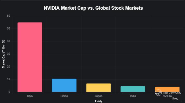 $NVIDIA(NVDA)$ NVIDIA’s market value has soared to $4.07 trillion, surpassing every country’s stock market except the U.S. ($55 trillion), China ($10.5 trillion), Japan ($6.8 trillion), and India ($4.7 trillion), per Deutsche Bank’s latest analysis. This AI powerhouse, trading at $175, has outpaced the S&P 500 at 6,520.34 and Nasdaq at 21,950, with Bitcoin at $123,456 and oil at $74.50/barrel amid tariff talks. The VIX at 14.10 suggests calm, while posts found on X erupt with “NVIDIA global giant” praise and “valuation bubble” warnings. This deep dive explores the milestone, financials, global impact, outlook, trading opportunities, and a plan to ride this tech titan’s wave.