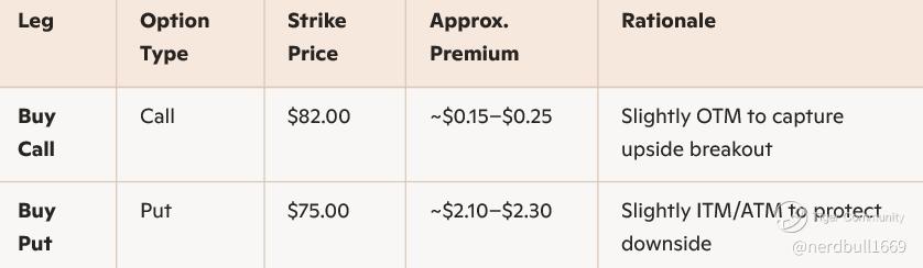 Here is a Long Strangle setup for $Newmont Mining(NEM)$, designed for the October 10, 2025 expiration. With NEM currently trading around $78.43, we’ll structure this to capture potential volatility in either direction.