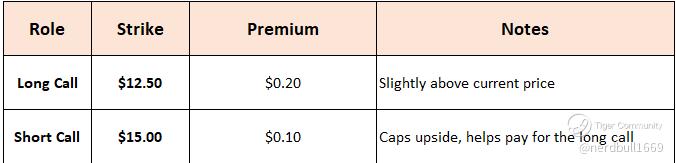 So I would buy the Oct 17 $12.50 call and sell the Oct 17 $15 call.