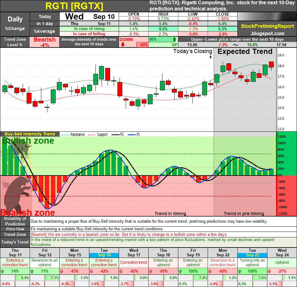 In the short term, RGTI is still under bearish conditions but is showing rebound trend behavior within a box pattern of fluctuations. This suggests a temporary easing of selling pressure.