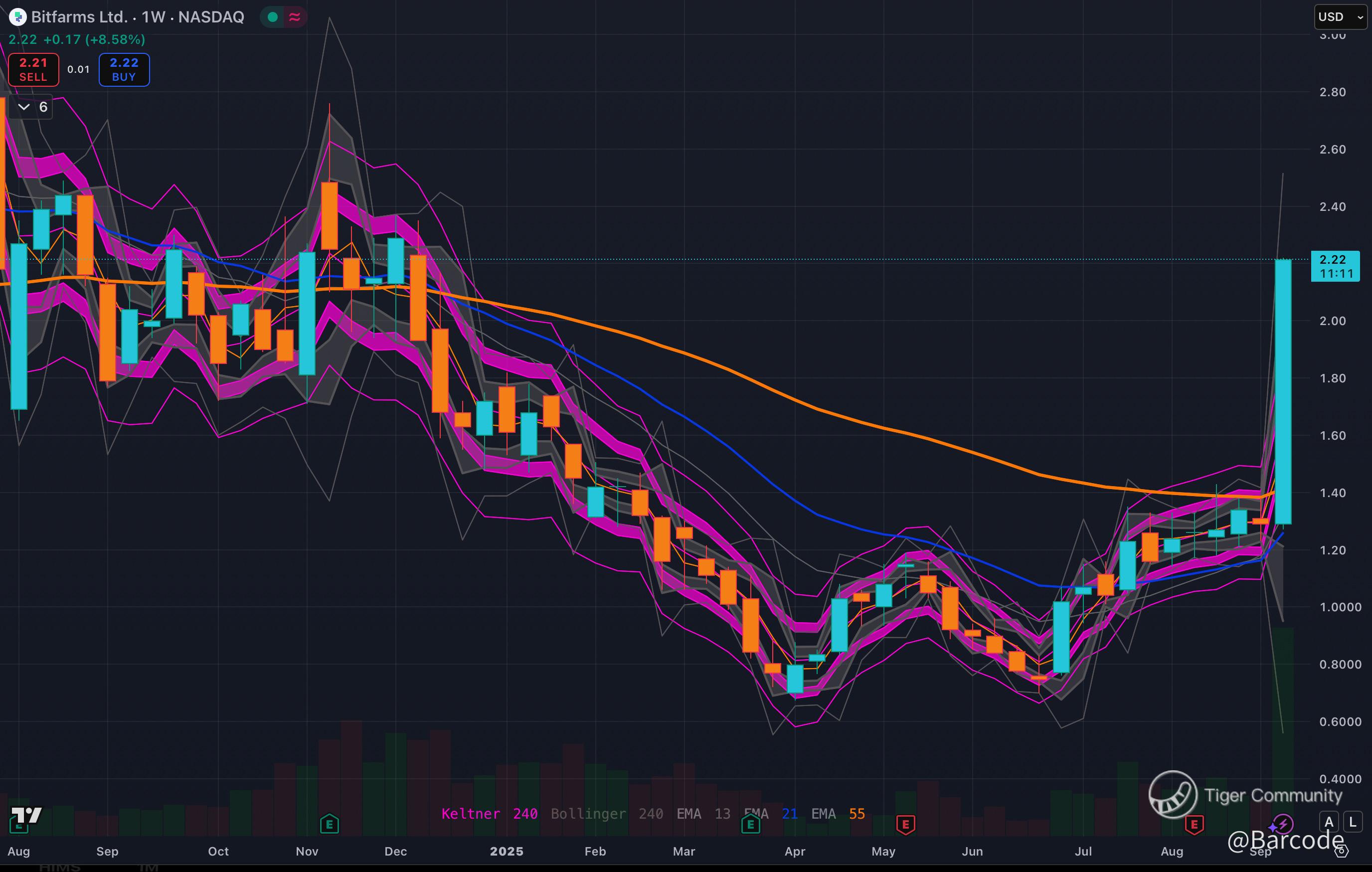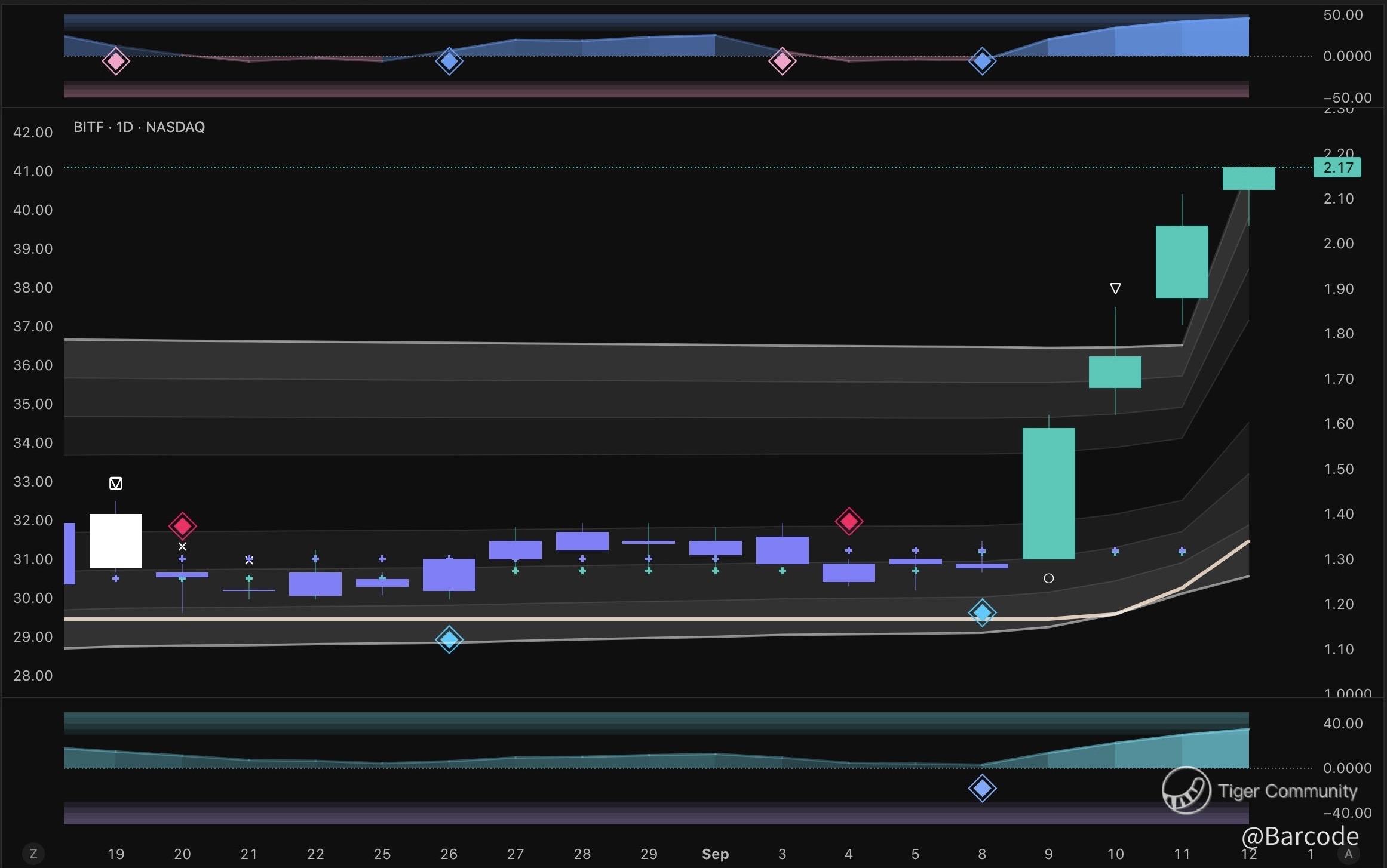 $Bitfarms Ltd.(BITF)$ $CME Bitcoin - main 2509(BTCmain)$ $BitMine Immersion Technologies Inc.(BMNR)$ 12Sep25 πΊπΈ/ 13Sep25 NZT π³πΏ This post is for my mate @Queengirlypops BITF is not drifting, it's erupting! π π π Multi-timeframe structure has flipped decisively bullish, options traders are piling in with 116K contracts traded and IV surging to 162, and the setup screams parabolic breakout. Pattern trading absolutley rules!