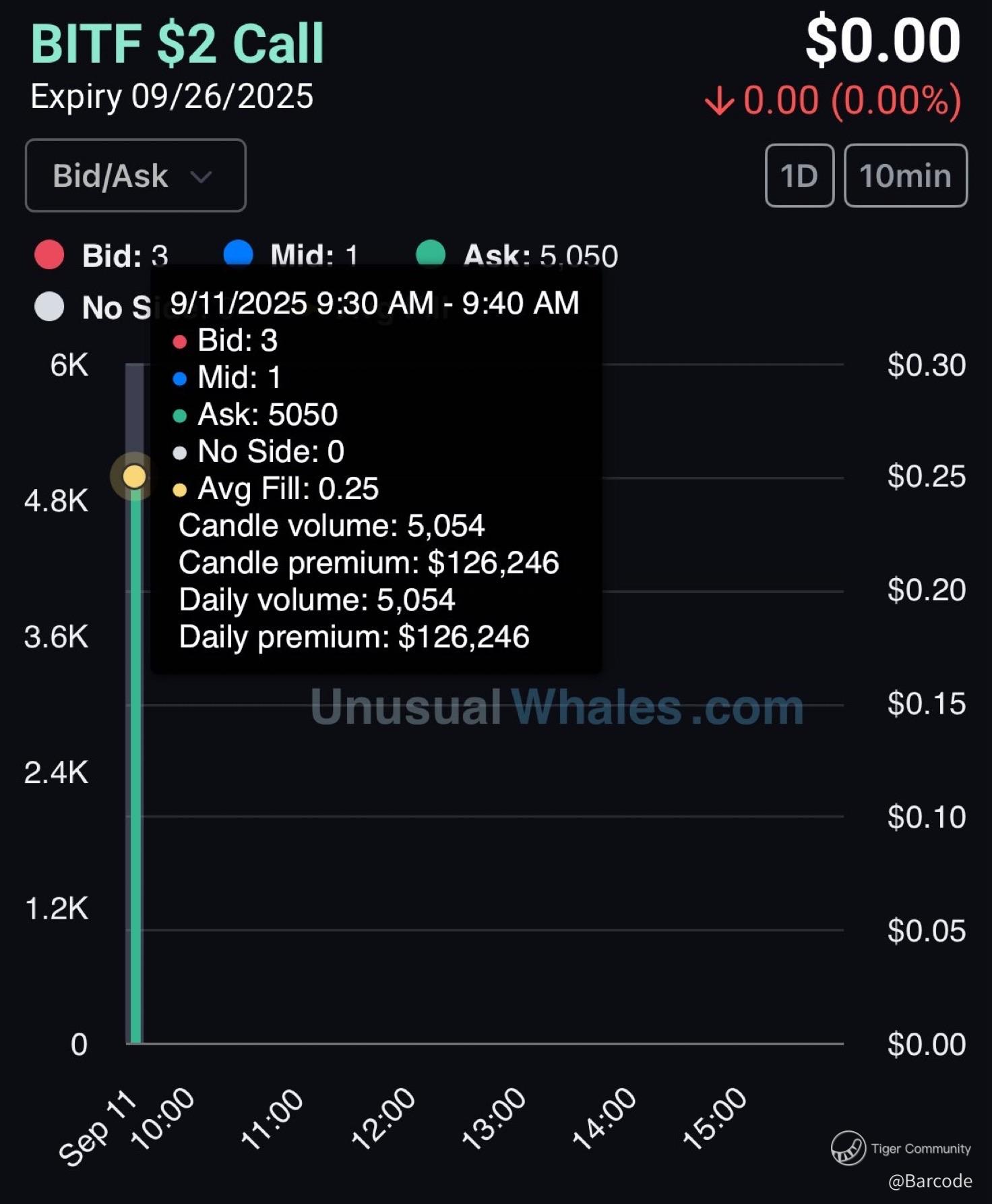 β’ $2 Calls (9/26/25 expiry): 5,054 contracts, $126,246 premium.