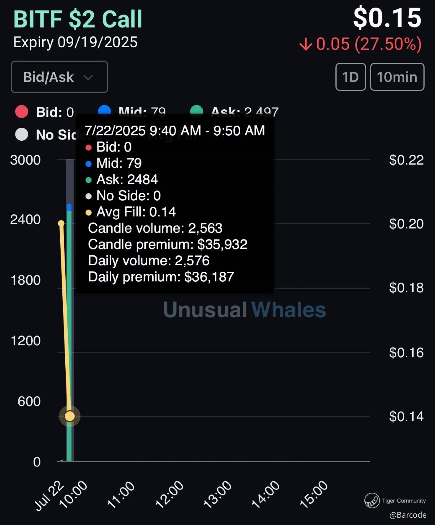 β’ $2 Calls (9/19/25 expiry): 2,576 contracts, $36,187 premium.