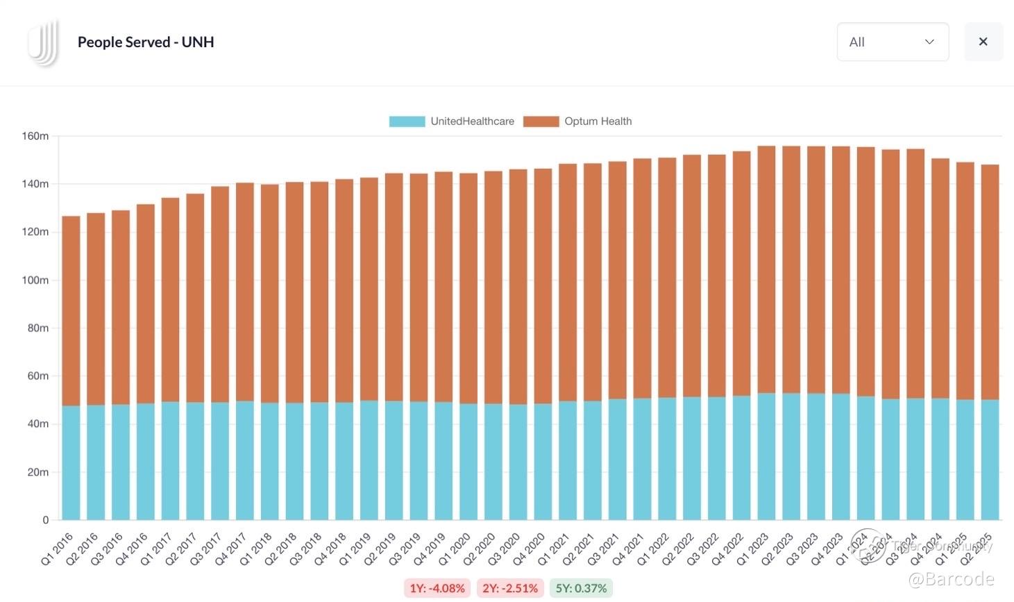 I see UnitedHealth breaking out as a value compounder hiding in plain sight. Despite people served falling (β4.08% YoY), Optum Health growth offsets declines, driving superior cash returns. At just 15.2x P/E and a 7.92% FCF yield, the setup is compelling.