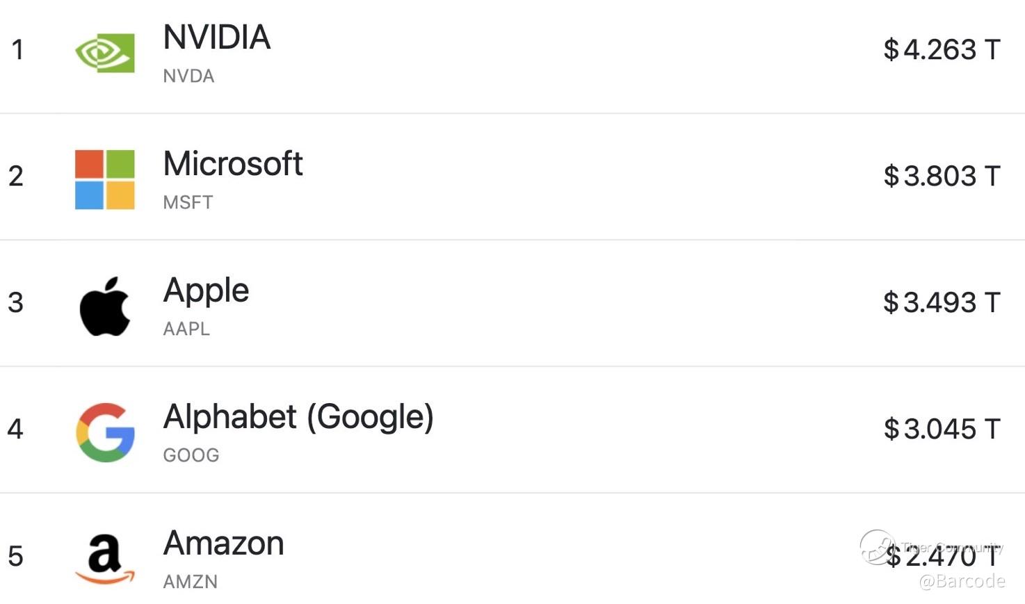 Google joins the $3T elite, cementing its place as the 4th largest company globally.