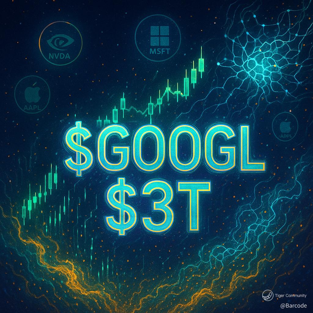 $Alphabet(GOOGL)$ $DIREXION DAILY GOOGL BULL 2X SHARES(GGLL)$ $NVIDIA(NVDA)$ I’m calling it straight; Alphabet has just smashed into the history books. $GOOGL has officially crossed the $3 Trillion market cap milestone, becoming the 4th company ever to do it, alongside $NVDA, $MSFT, and $AAPL. This isn’t hype, it’s inevitability. Google is now a $3T company, and still not overpriced when you stack its AI, Cloud, and Gemini growth engines against the valuation.