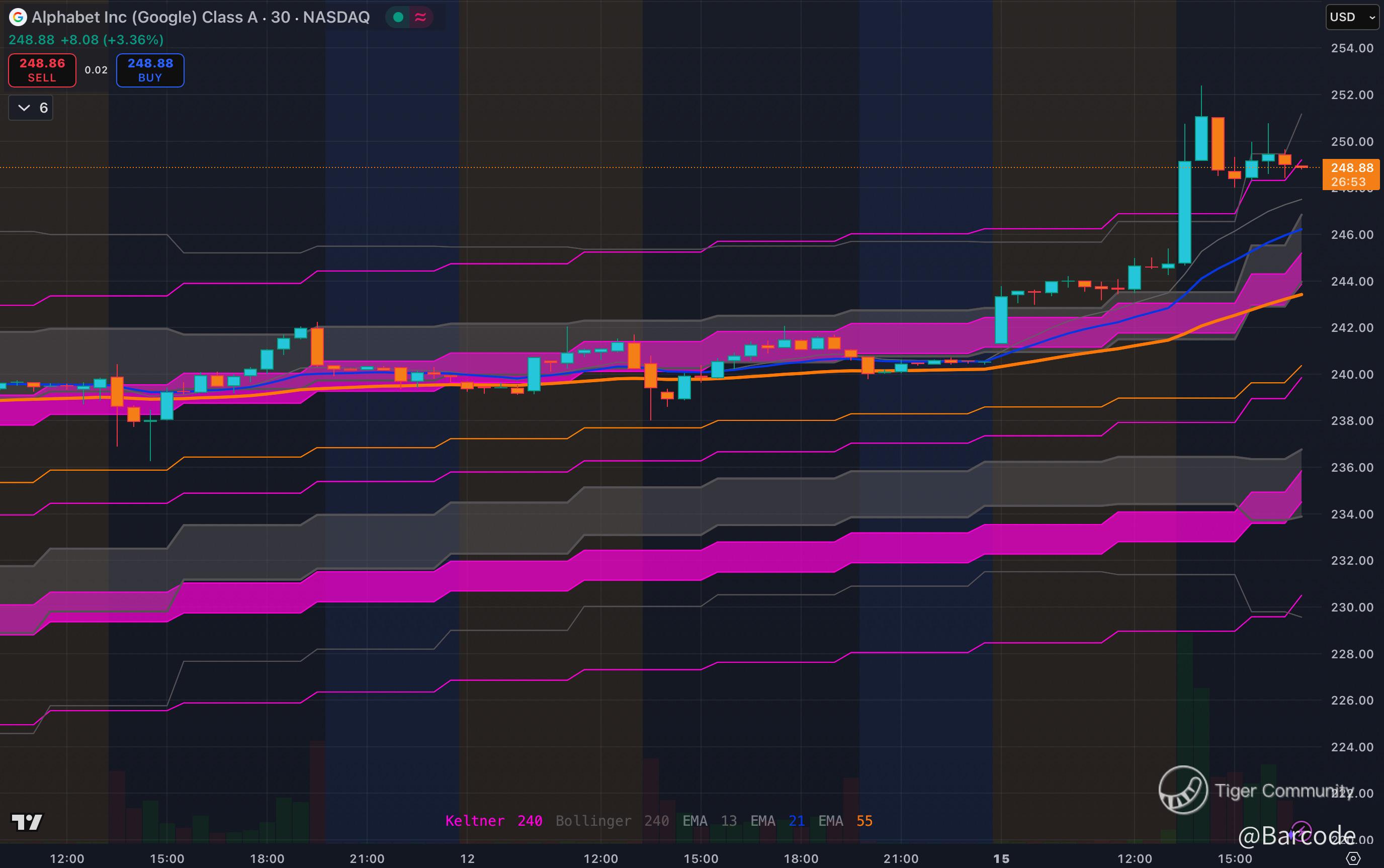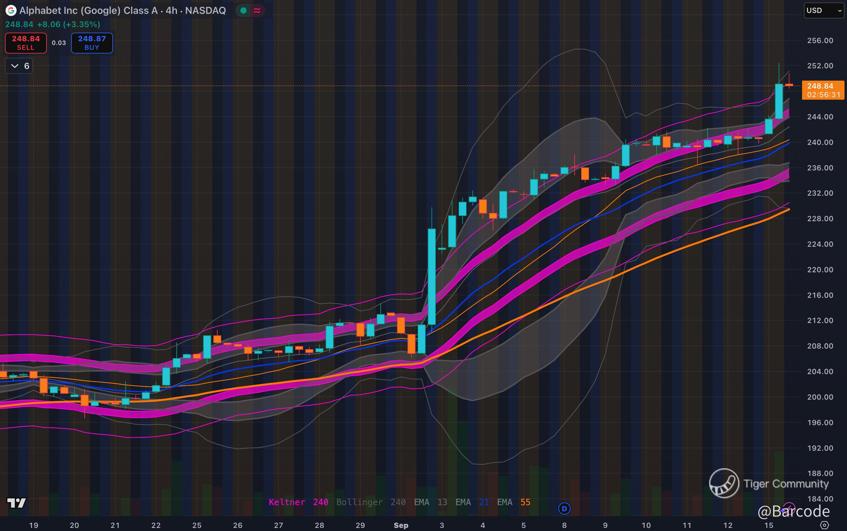 $GOOGL spot at $249.10 pressing the $250 resistance wall.