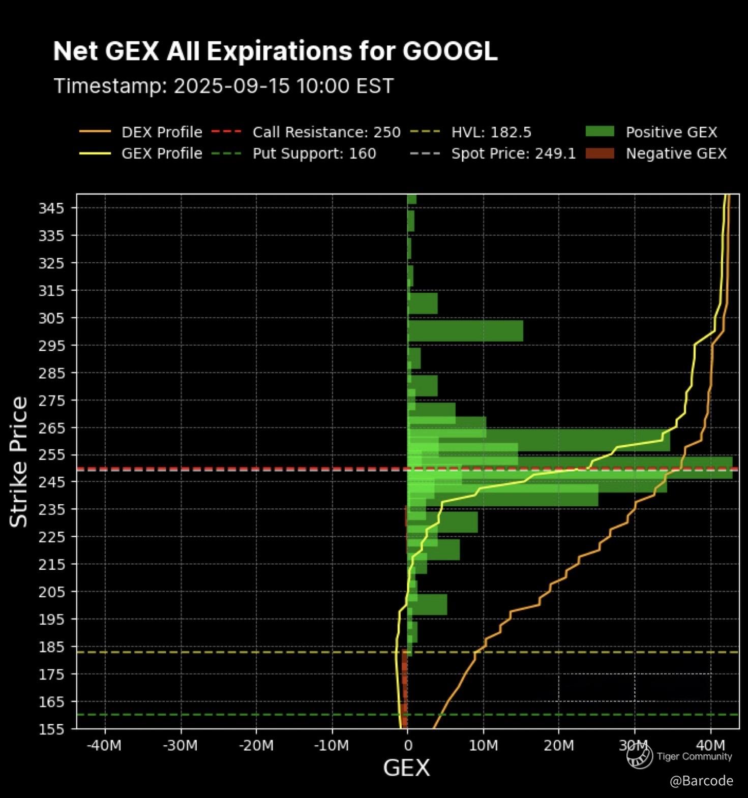 GOOGL holds above $250; institutional flows accelerate gamma squeeze.