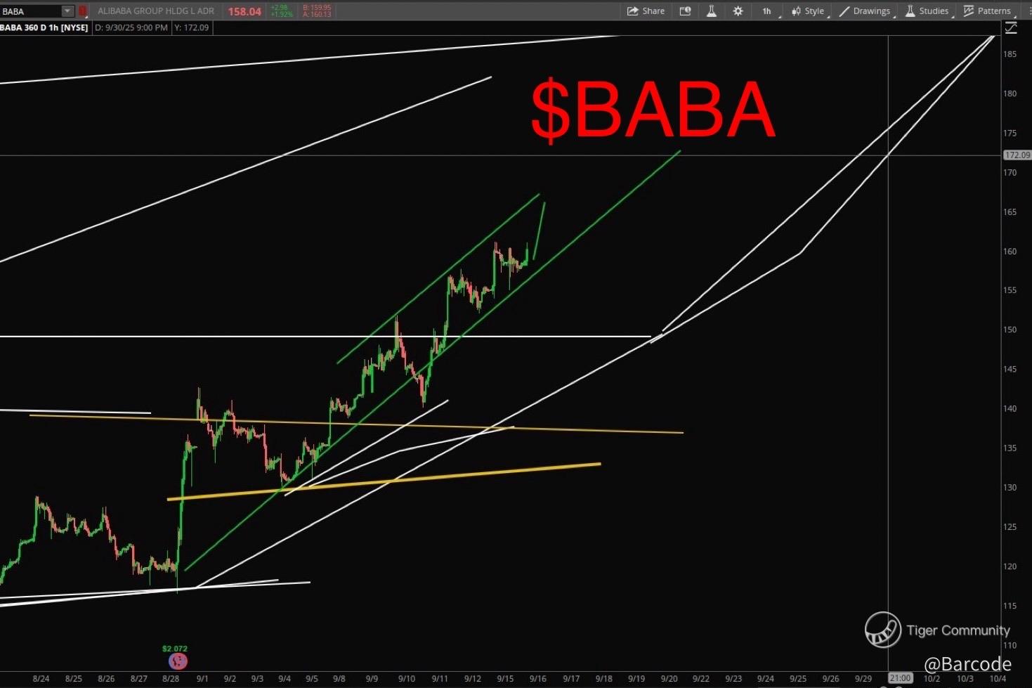 - Cool Cat Winston·09-17TOP🔥🔥🔥 🐉BABA ripping to 165.82 overnight and up 2.23% is exactly the kind of fire you laid out, that dragon’s breath volume surge is alive and kicking. The channel breakout looks unstoppable here, it’s got the same conviction NVDA showed when it cleared resistance and never looked back 🐉🐲2Report