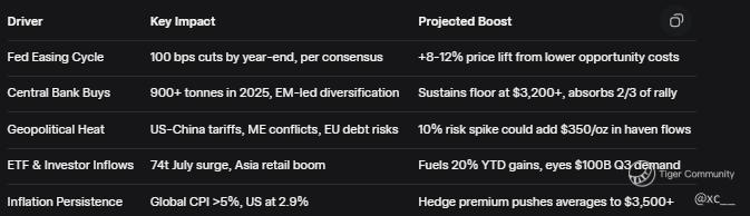 Performance-wise, this isn't a flash in the pan. Back-to-back monster years: 27% pop in 2024, another 27% through mid-2025, outpacing stocks and bonds in a world that's anything but stable. Major players are scrambling to catch up—Goldman Sachs jacked their year-end call to $3,700, eyeing $3,880 in a downturn; J.P. Morgan sees $3,675 by Q4, ramping to $4,000 mid-next year; UBS bumped to $3,200 peak, while Citi holds at $3,300 short-term but admits upside from chaos. Even bears like Long Forecast whisper $3,896 by September's end. The math? With yields dropping and volatility spiking, gold's inverse dance with the buck could add another 10-15% if Fed Chair Powell goes dovish tomorrow.
