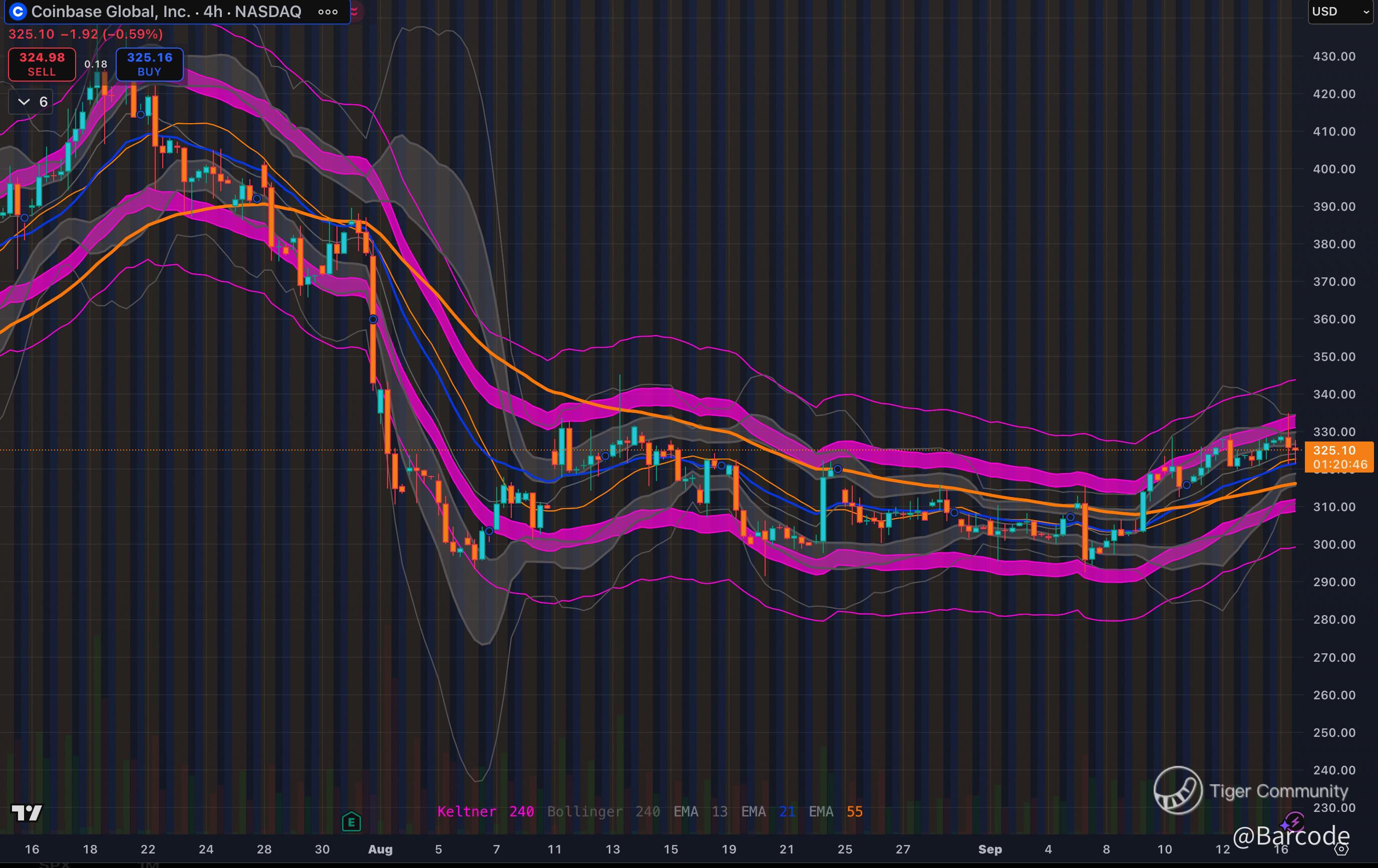 🔥This setup feels so ready to pop, like I’m watching $COIN just chill above that 319 Fib waiting for FOMC fireworks. Over 330 and it’s like instant energy release toward 348, feels the same way SOL ripped once it cleared its coil