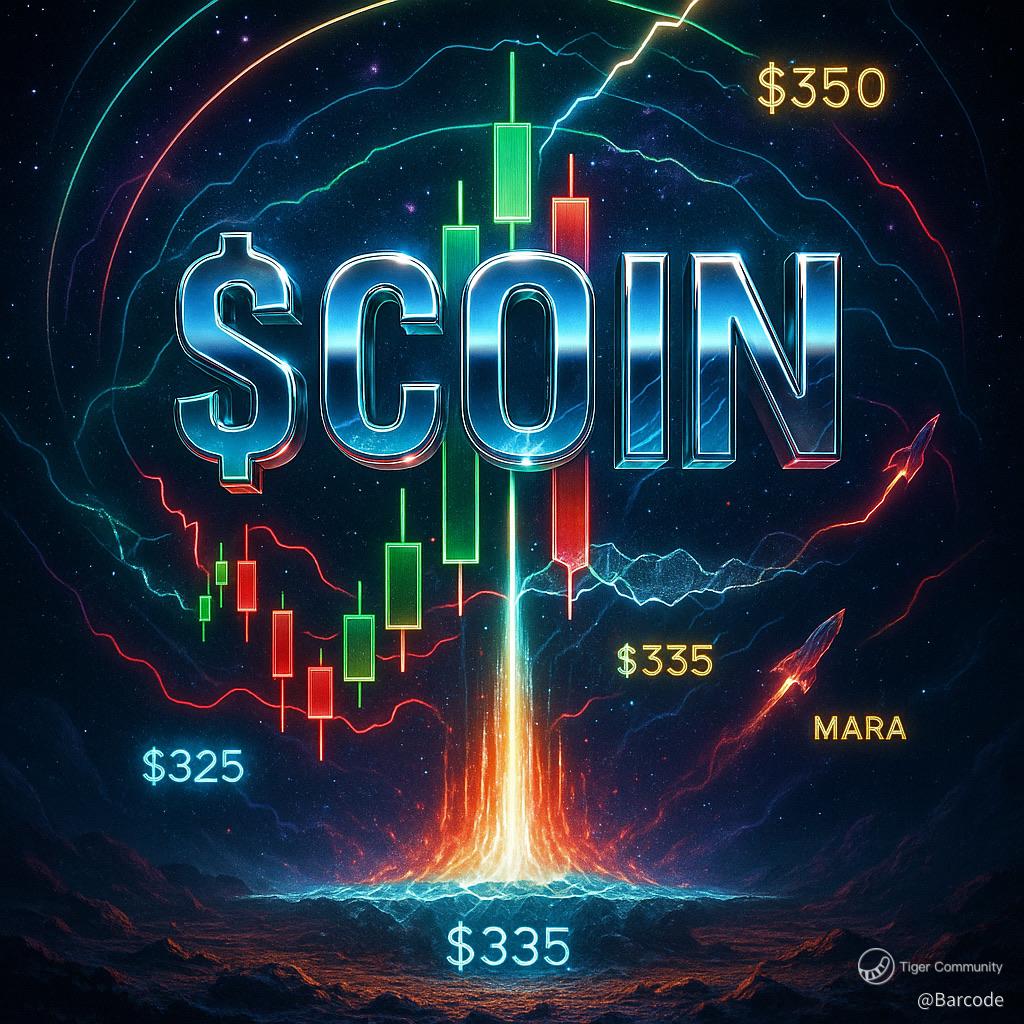 Coinbase remains tightly coupled to BTC flows. Bitcoin’s consolidation flag around $123K suggests the next volatility event could be the trigger for $COIN to ignite. Keep an eye on MARA as a secondary tell; miners often front-run sentiment shifts.