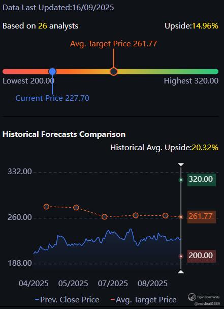 Based on 26 analysts from Tiger offering 12 month price targets for FedEx in the last 3 months. The average price target is $261.77 with a high forecast of $320.00 and a low forecast of $200.00. The average price target represents a 14.96% change from the last price of $227.70.