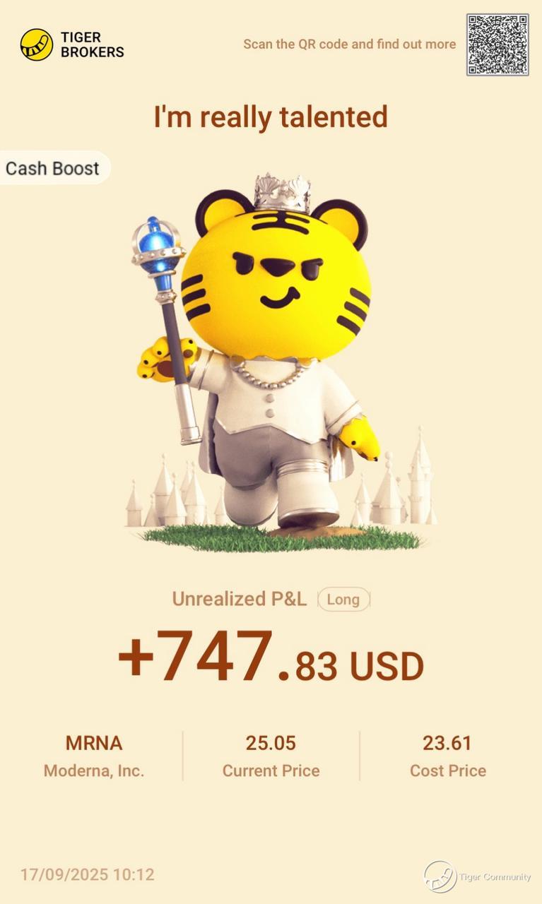 $Moderna, Inc.(MRNA)$ Been watching MRNA lately — despite the volatility, I got a nice win (feels like luck too), mainly because I believe in its long-term growth in vaccine tech + the financials aren’t terrible. If regulatory headwinds calm down and new products get approved, I think there’s room for this one to run.