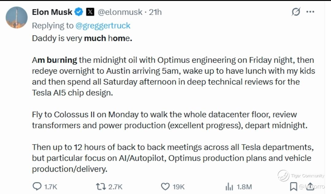 Recent updates include Musk's announcement of an AI5 chip review this weekend and a key meeting next week on AI/autonomous systems, Optimus production, and vehicle output—further fueling optimism around execution.