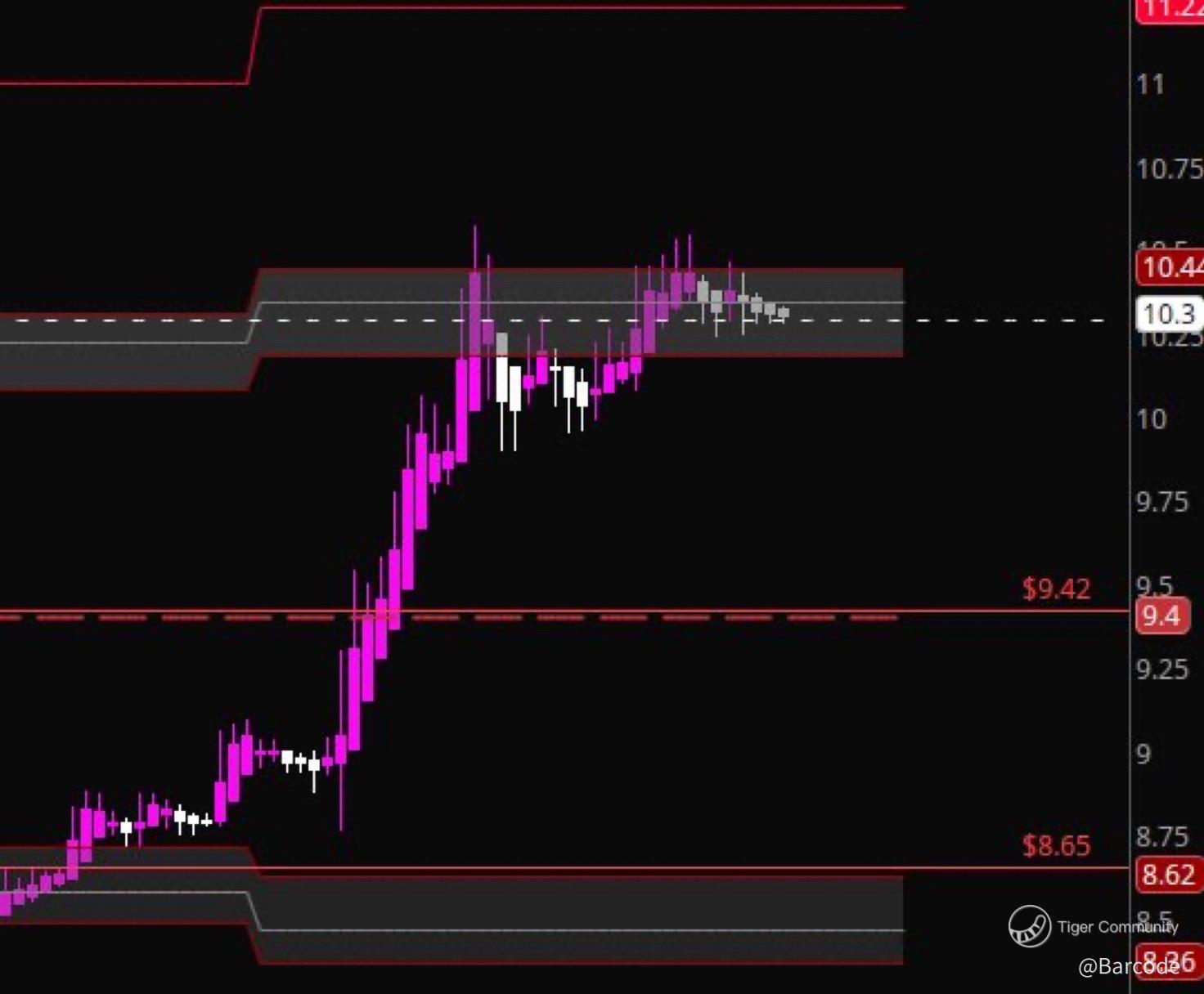 The liquidity stair-step is intact. Each credibility reset has been defended, most recently at $9.42. Longer arcs suggest probability-weighted extensions toward $14 and $16 as traders lean into the breakout. These are not predictions. Theyโre probability-weighted frameworks.