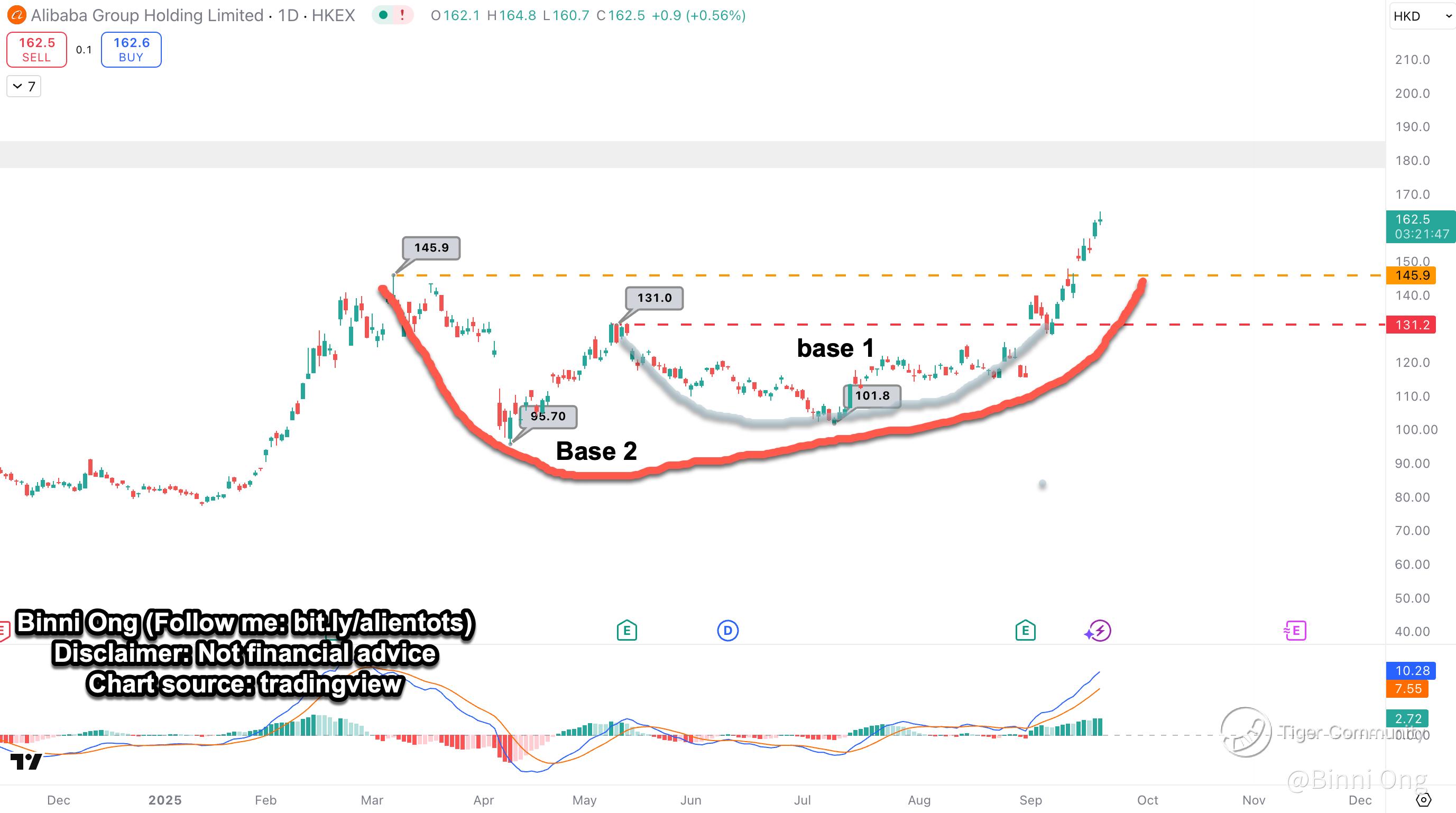 Alibaba $BABA-W(09988)$ has broken out of two constructive bases, signaling strong upward momentum:
