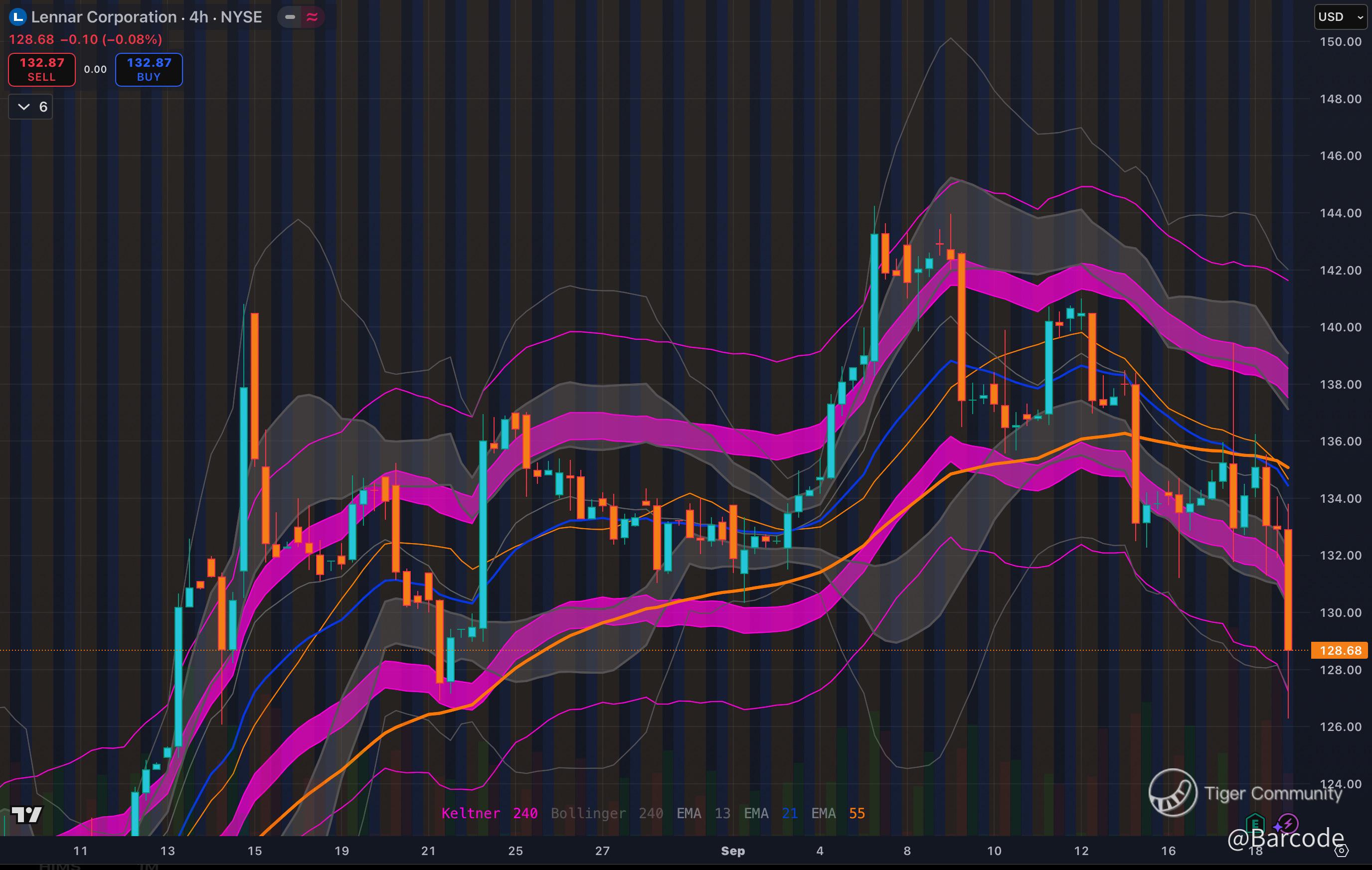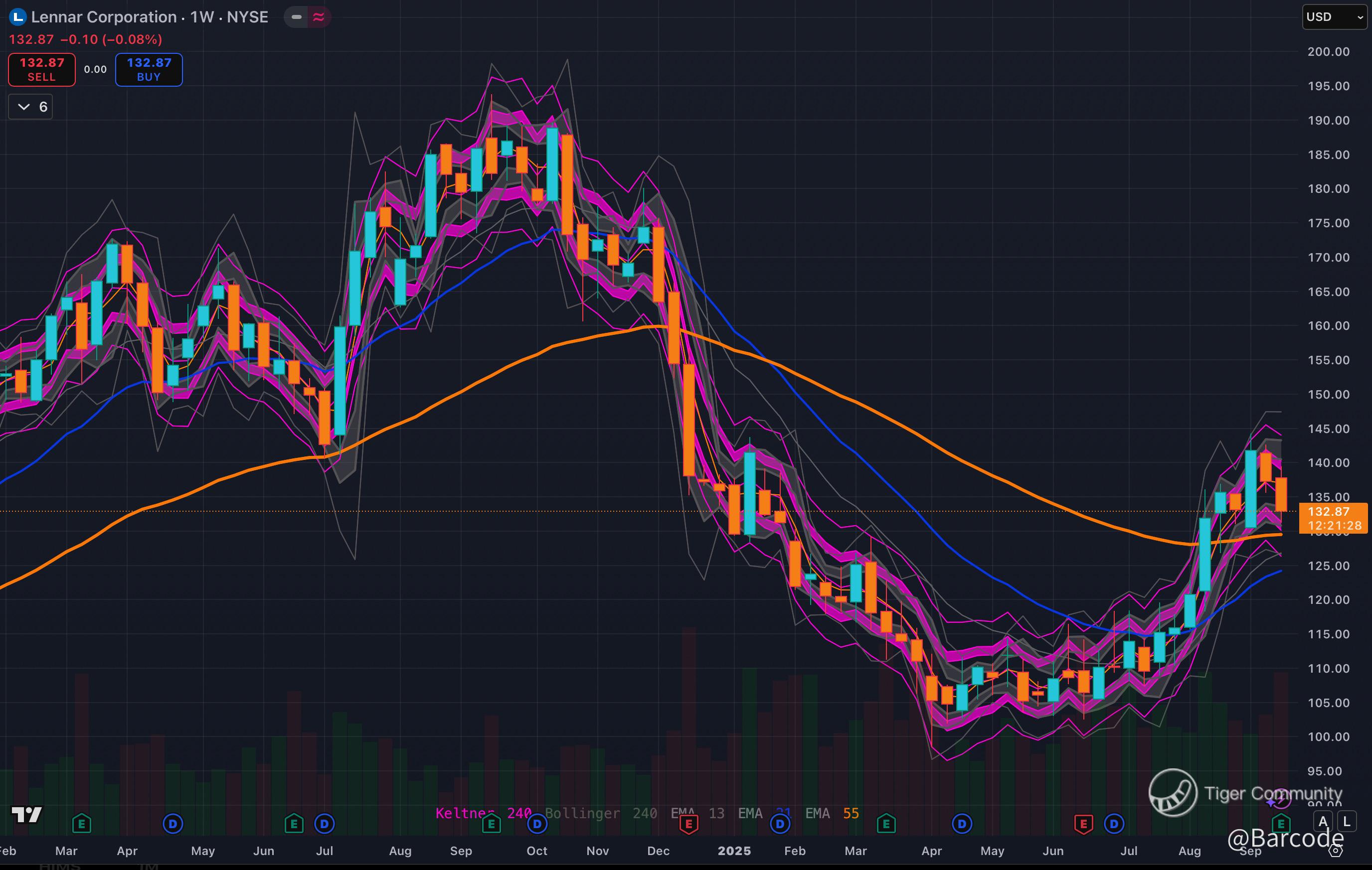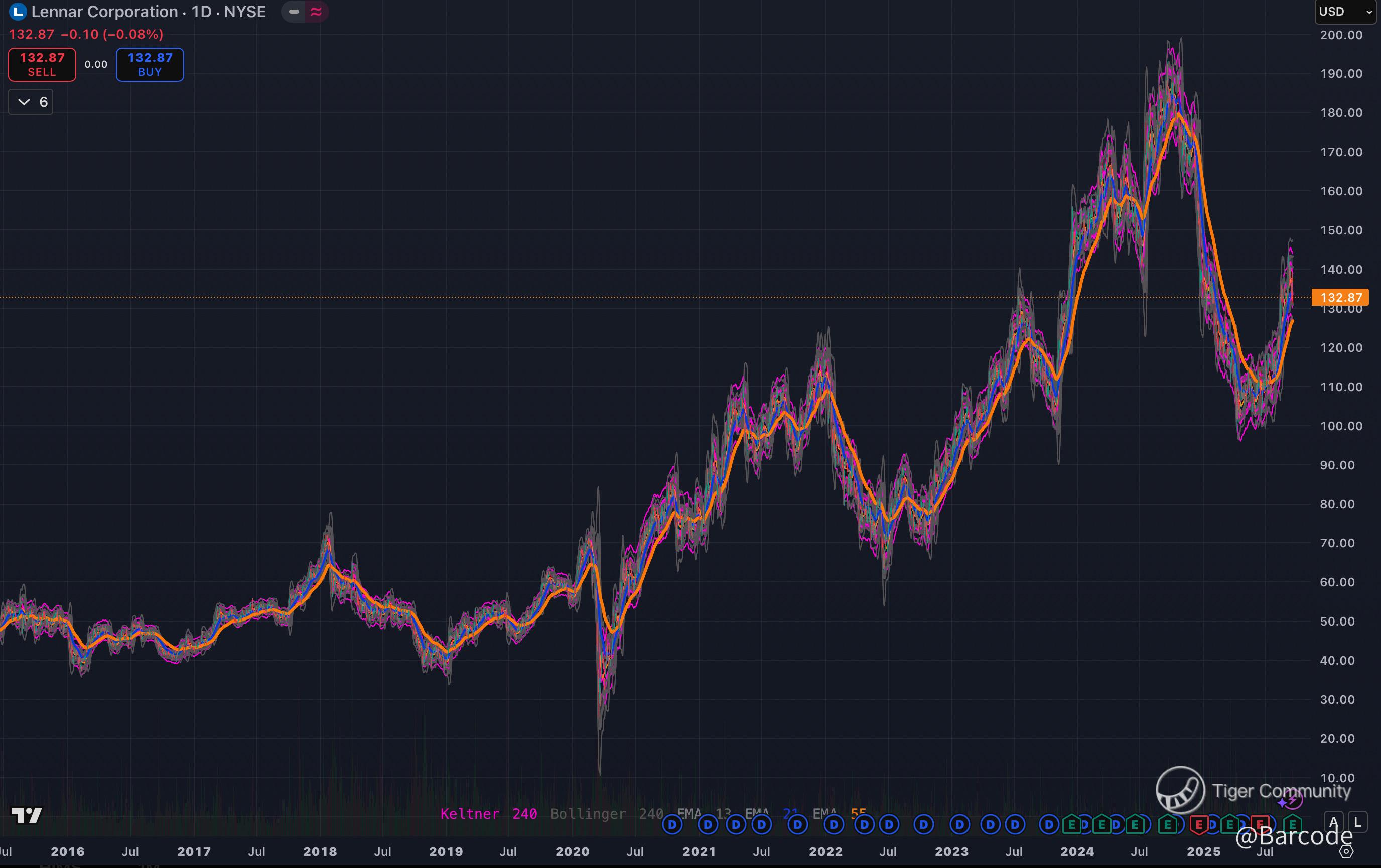 🤯That $LEN setup is wild, eight straight selloffs after earnings and you’ve still got bulls chasing volume with crushed margins, I’m honestly hyped to see if it breaks $136 or slides back to $129, feels like one of those moments the whole housing tape’s watching fr