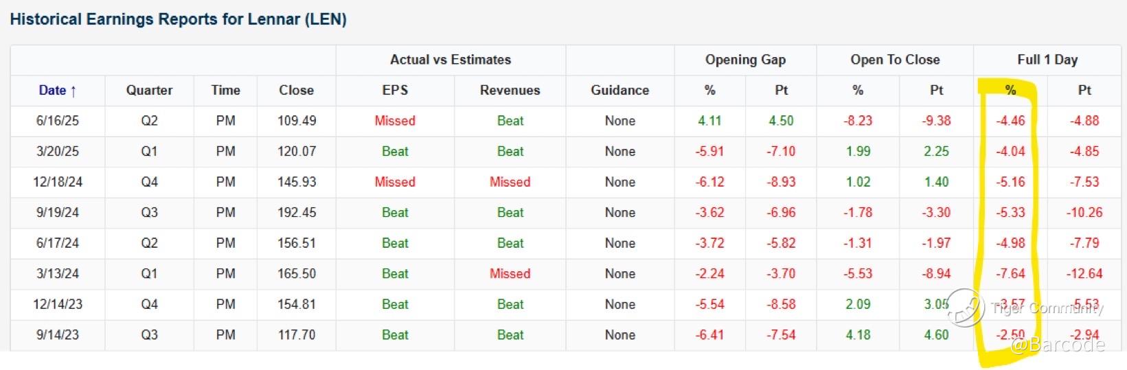8 straight post-earnings drops—will $LEN break the streak this time?