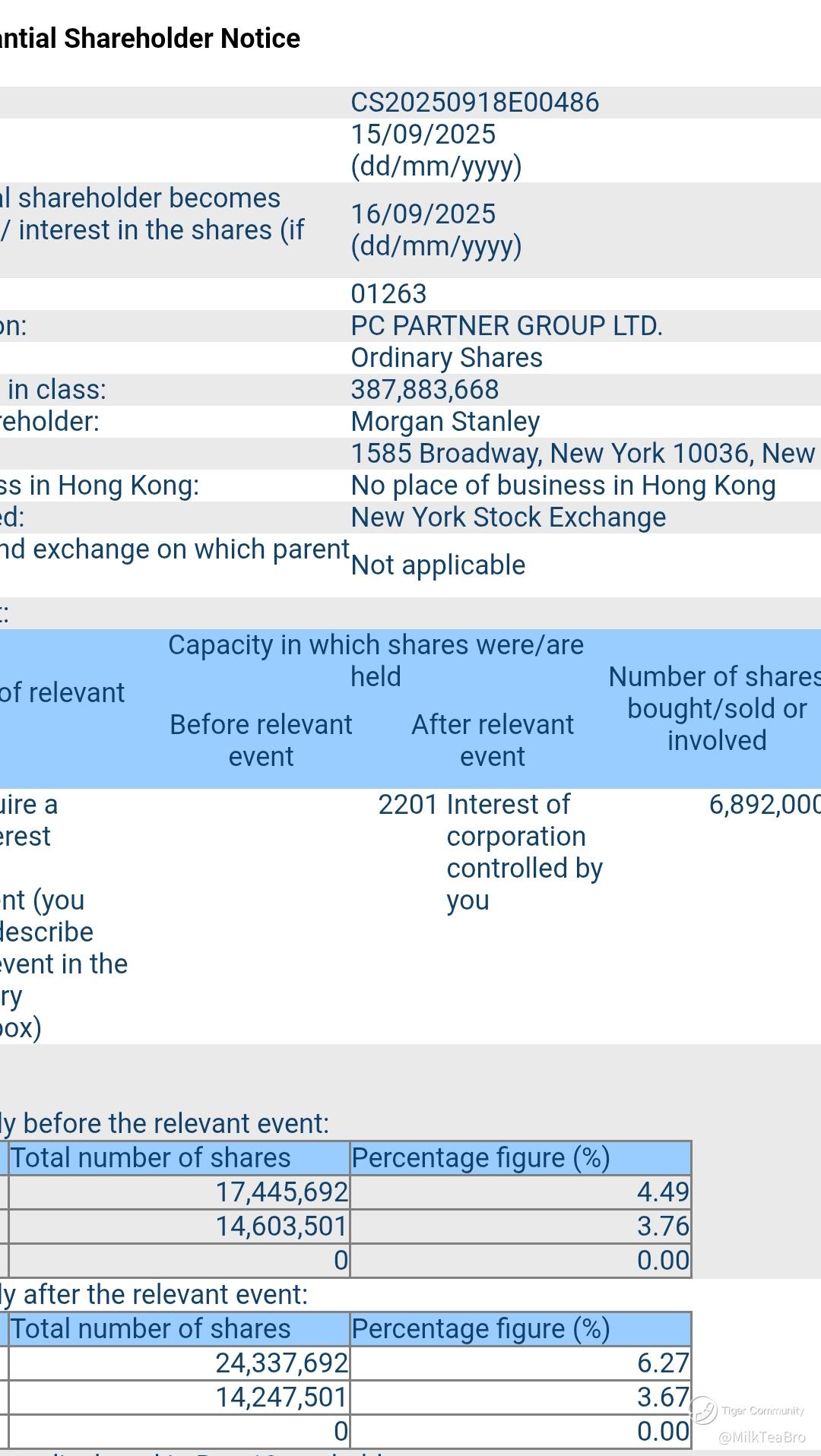 However, recent Substantial Shareholder Notices (dated 2025-09-19) indicate that RAYS Capital and Morgan Stanley have each acquired stakes exceeding 5%, suggesting they "bought the dip."