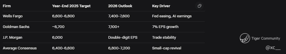$S&P 500(.SPX)$ $NASDAQ(.IXIC)$ Wall Street's on fire after Wells Fargo cranked up its year-end forecast to 6,600-6,800, ditching the old 6,300-6,500 range amid Fed easing magic and AI-fueled earnings blasts. This midpoint leap screams over 4% upside from prior vibes, with 2026 visions hitting 7,400-7,600 as small caps roar back and tech titans dominate. Benchmark's already flexing at 6,632 post-cut, with Nasdaq and Russell 2000 smashing records, proving rate relief supercharges risk assets like clockwork. Global funds dumped $18B last week, but dip-buyers own the tape, eyeing double-digit EPS growth and tariff dodges for a multi-month melt-up. Crypto's syncing up too—BTC at $116K teasing ATHs as liquidity floods in.