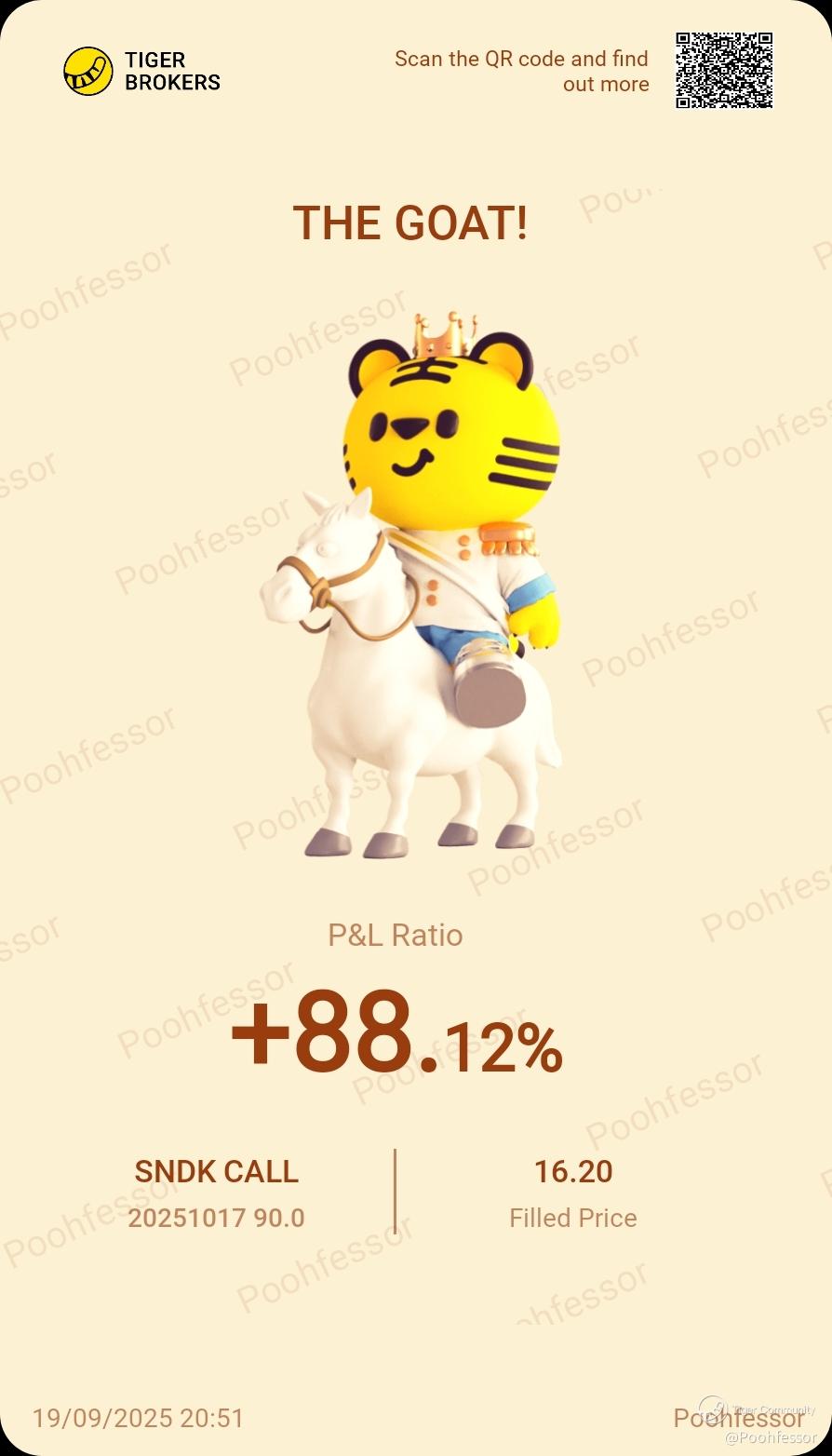 $SNDK 20251017 90.0 CALL$ They see me rolling, they hating... after taking profit last week, I rolled to a higher strike this week. Will it reach $120? No one is certain... though I think there could be still some gas left in the tank. Will consider next week whether to continue rolling to a higher strike. Have a great weekend