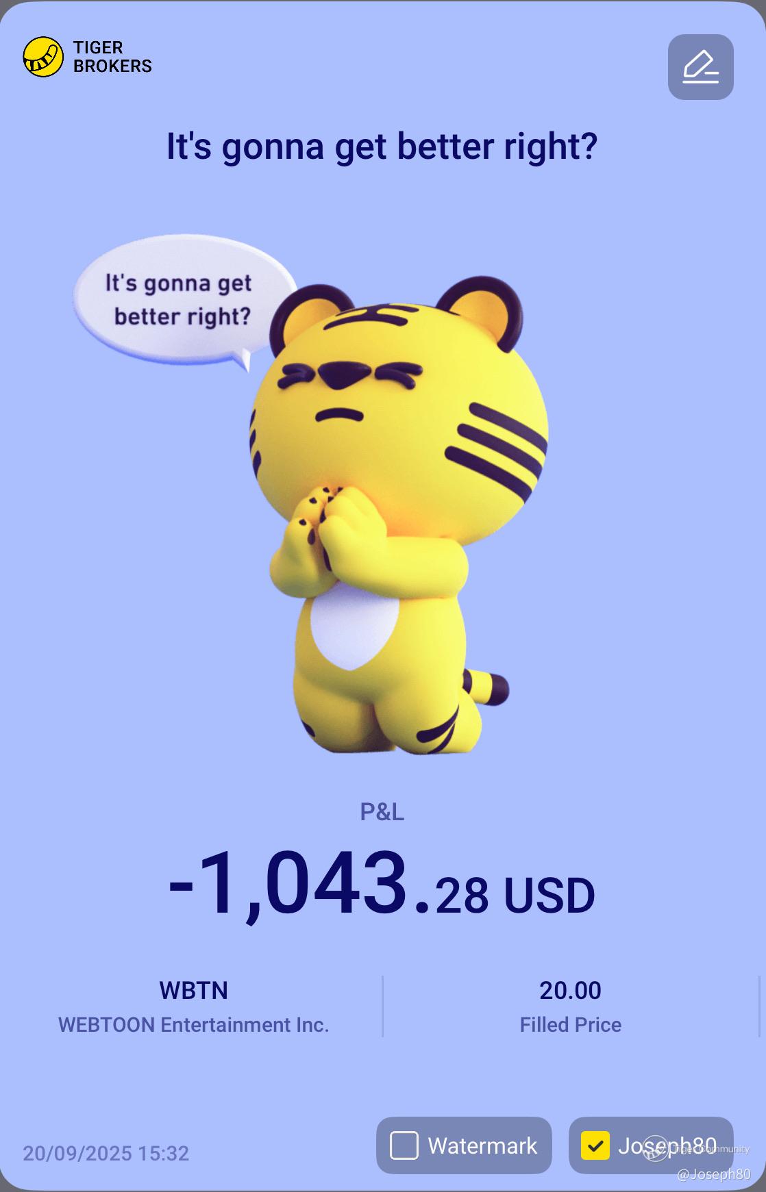 $WBTN 20250919 20.0 CALL$ My options are exercised so overall, it's a loss usd 334.28.