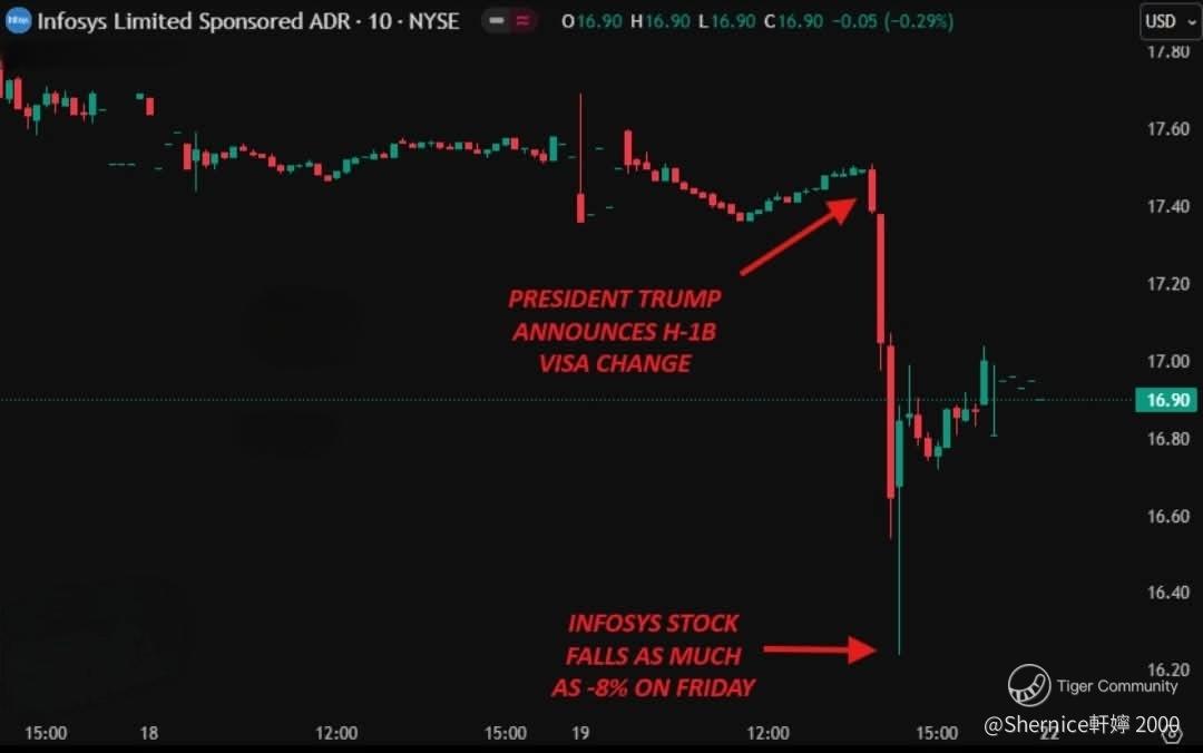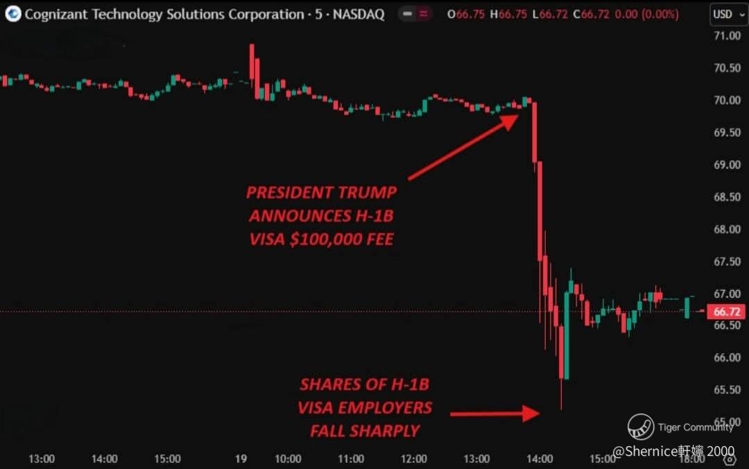 Infosys plunged 8% within 30 minutes of the news. Intel, the 9th largest H-1B employer, is caught in the crossfire even though the Trump administration literally bought a 10% stake in them and Nvidia just threw in $5B. Cognizant also took a hit, sliding nearly 5% as investors panicked over how the company will handle higher visa costs.