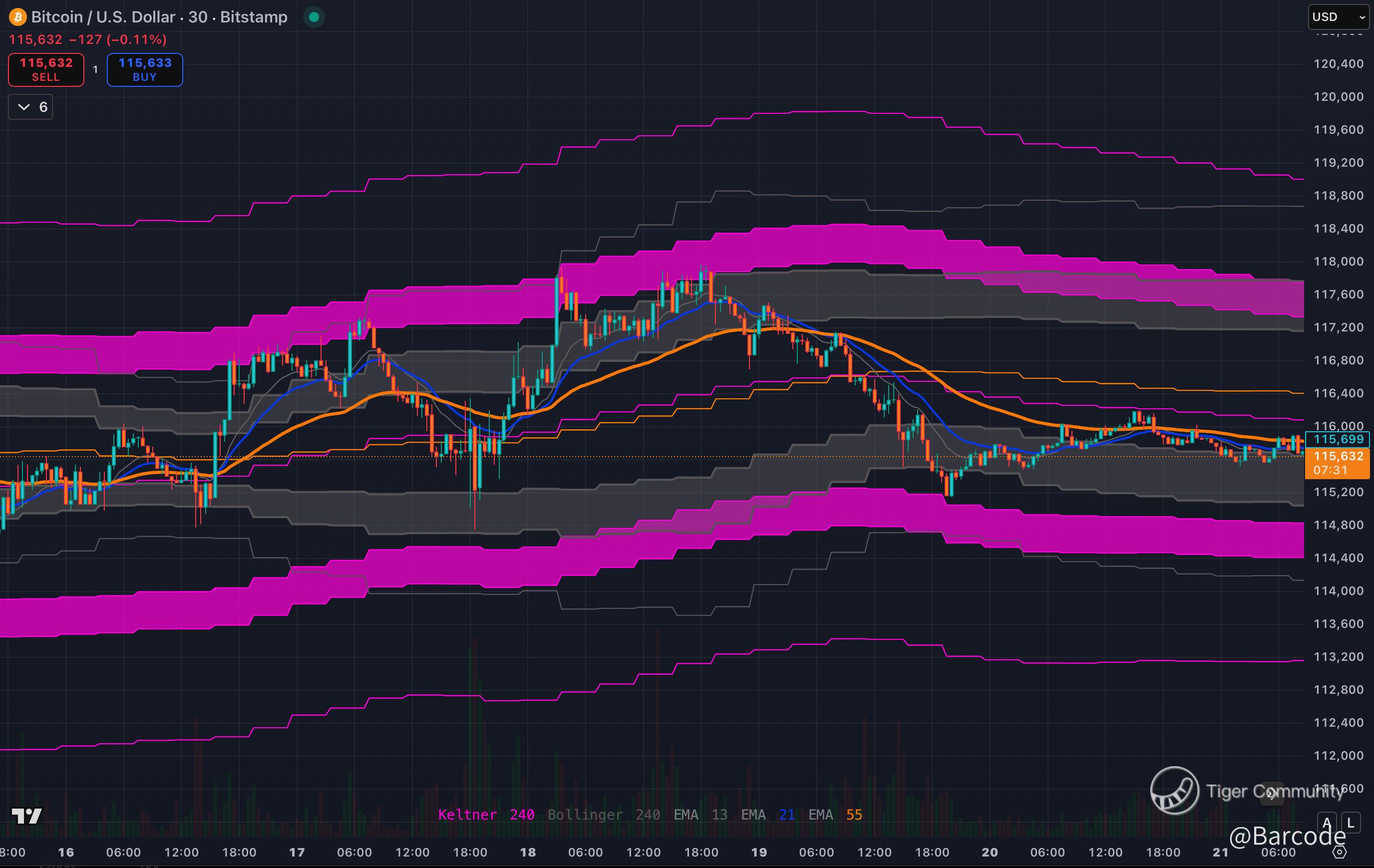 Bitcoin is consolidating just under $116K, right in the Keltner mid-bands. The setup is binary: a breakout over 🔴 $117K–$118K ignites miners for their next leg, while a dip under 🟢 $114K forces retests of the support levels we’ve mapped. If resistance gives way, the stretch upside sits at 🟠 $123K. With miners already heating up, BTC’s next move is the direct ignition trigger for whether this cycle extends into another wave of momentum.