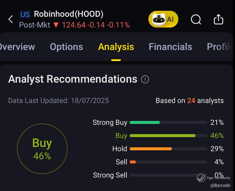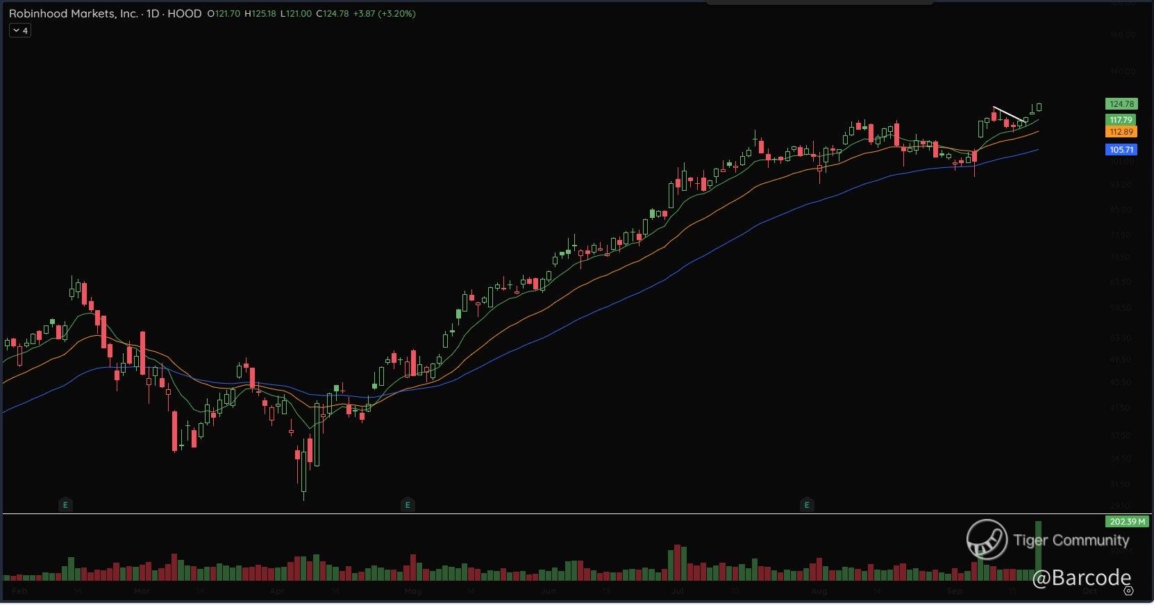 β’ $HOOD just closed at all-time highs. Nothing more bullish than that. Analysts (46% Buy, 21% Strong Buy) are likely to revise targets higher as banking products roll out in the next month.