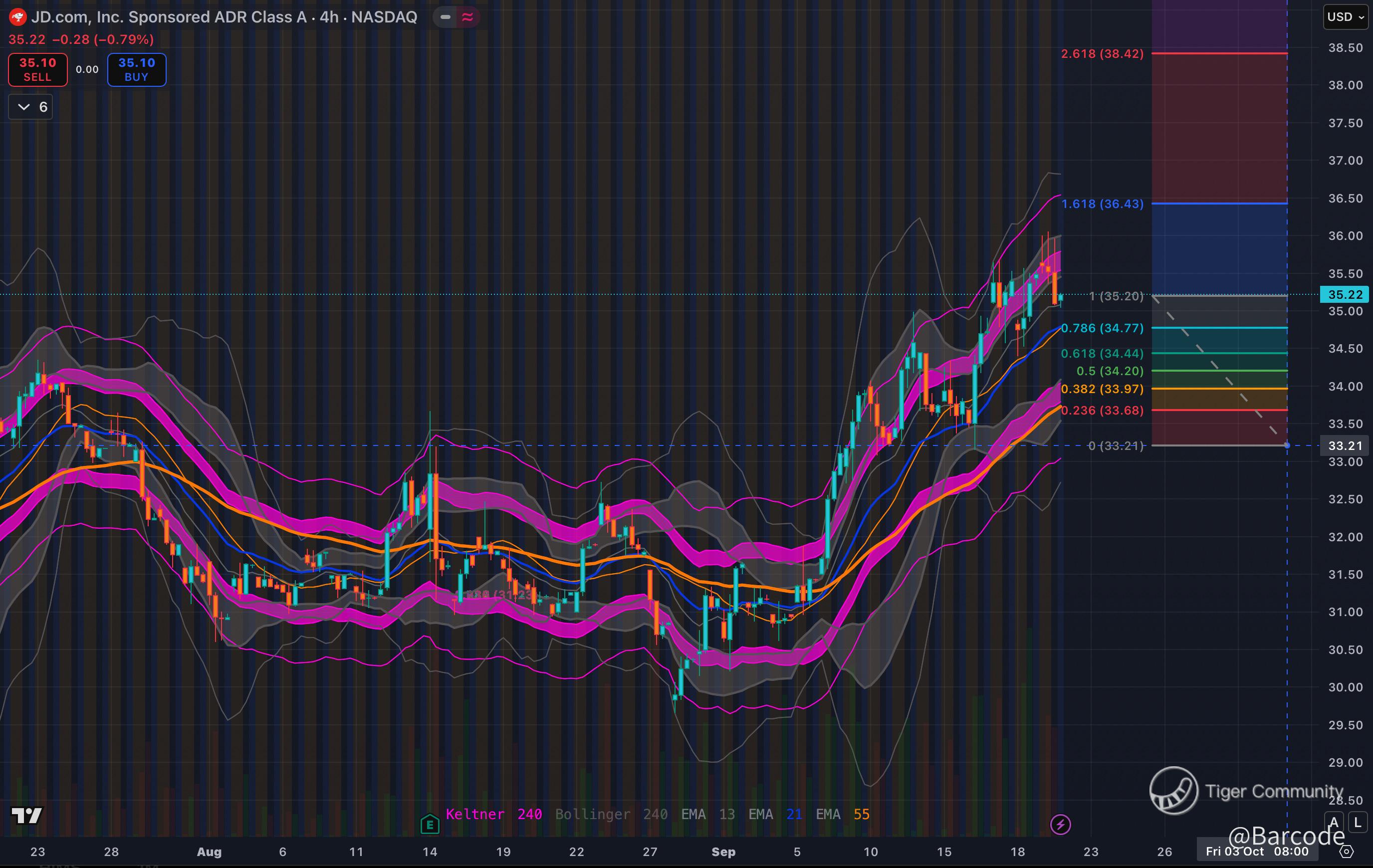 β’ Resistance targets: $36.43 (1.618 Fib), $38.42 (2.618 Fib)