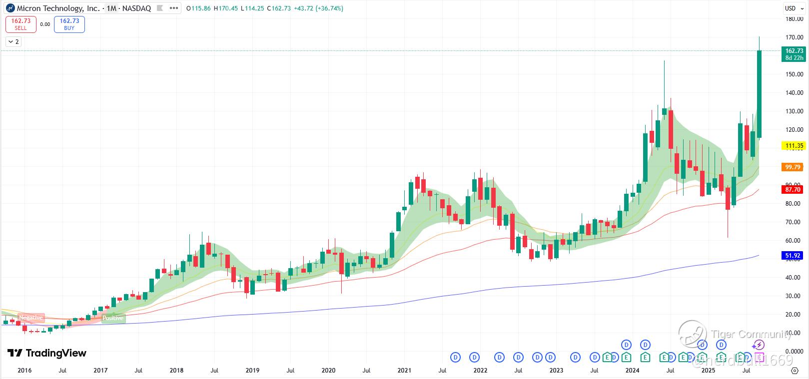 Positive Scenario (Earnings Beat & Strong Guidance): If Micron reports a significant beat on revenue and EPS and, more importantly, provides strong guidance for the next quarter, the stock could see a positive reaction. This is particularly likely if management provides a bullish outlook on HBM and AI demand. A break above key technical levels, such as the all-time high of around $170-$173, could signal a continuation of the rally.