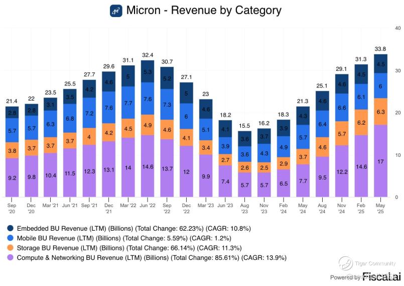 Segment Performance: The strong results were primarily driven by record-breaking performance in the DRAM (Dynamic Random-Access Memory) segment, with revenue hitting an all-time high. This was fueled by a nearly 50% sequential increase in High-Bandwidth Memory (HBM) revenue. While the NAND flash market has been more challenging, Micron saw a solid sequential increase in its NAND revenue, indicating a stabilizing market.