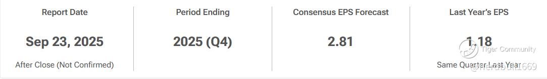 $Micron Technology(MU)$ is scheduled to report its fiscal fourth-quarter and full fiscal year 2025 earnings on Tuesday, September 23, 2025, after the market closes.