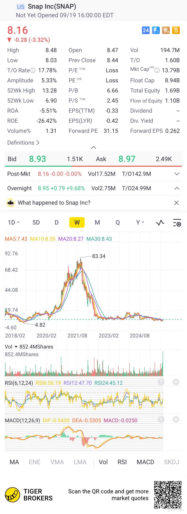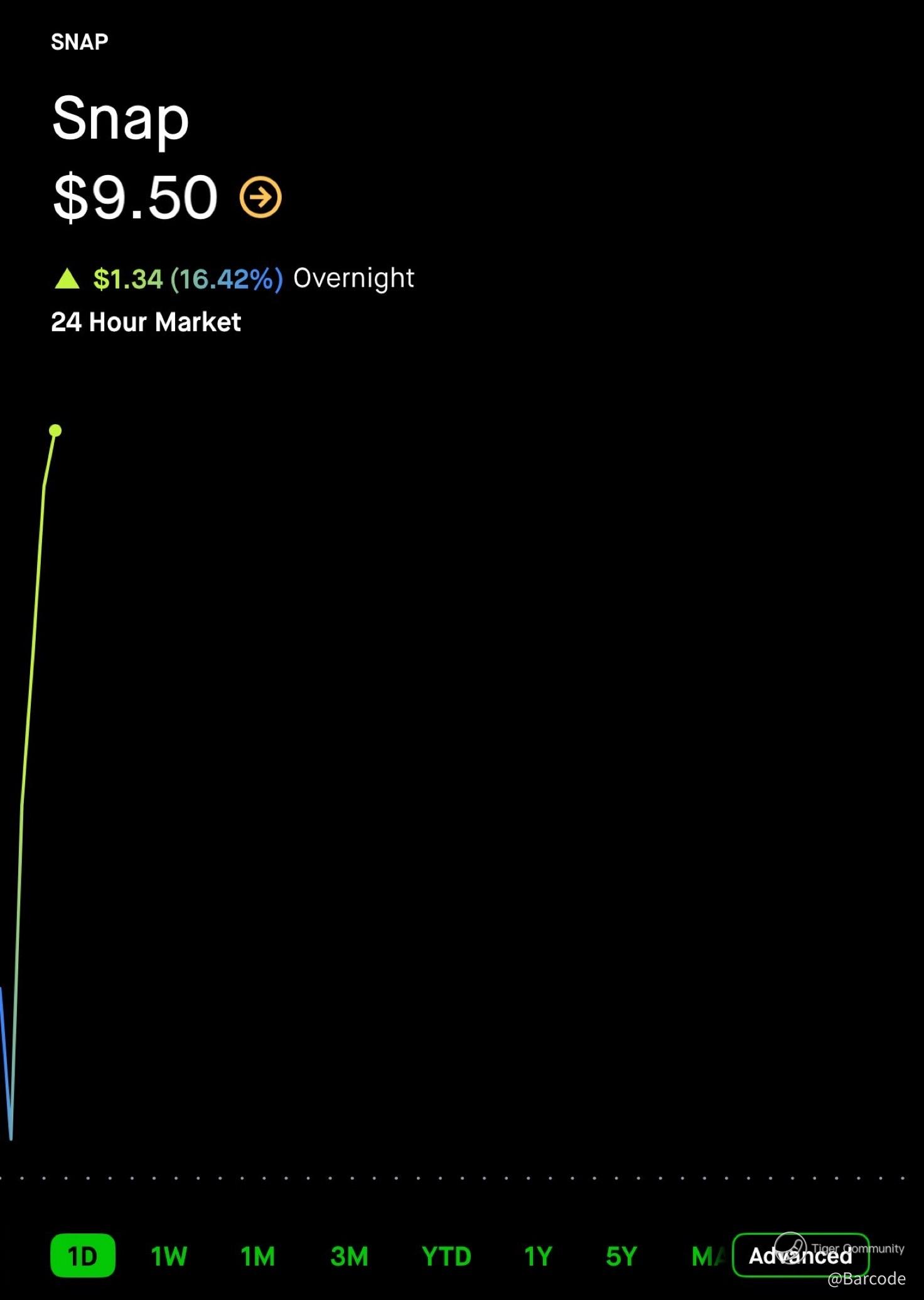 $Snap Inc(SNAP)$ π¨ $SNAP is up an insane 16.5% overnight. Friday saw the hiighest weekly volume ever!
