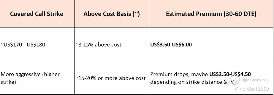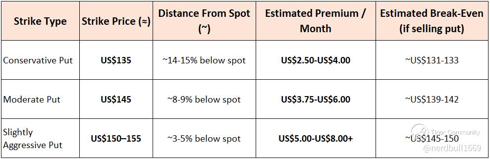 If assigned (we end up owning 100 shares at cost basis ~US$145 - premium = ~US$139.50):