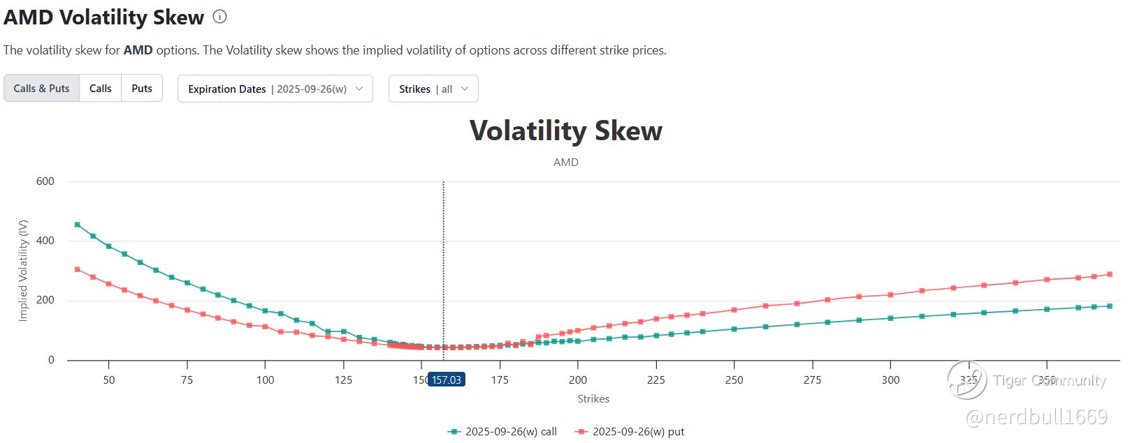 The implied volatility for AMD is decently elevated (tech/chip stock), so premiums are nontrivial.