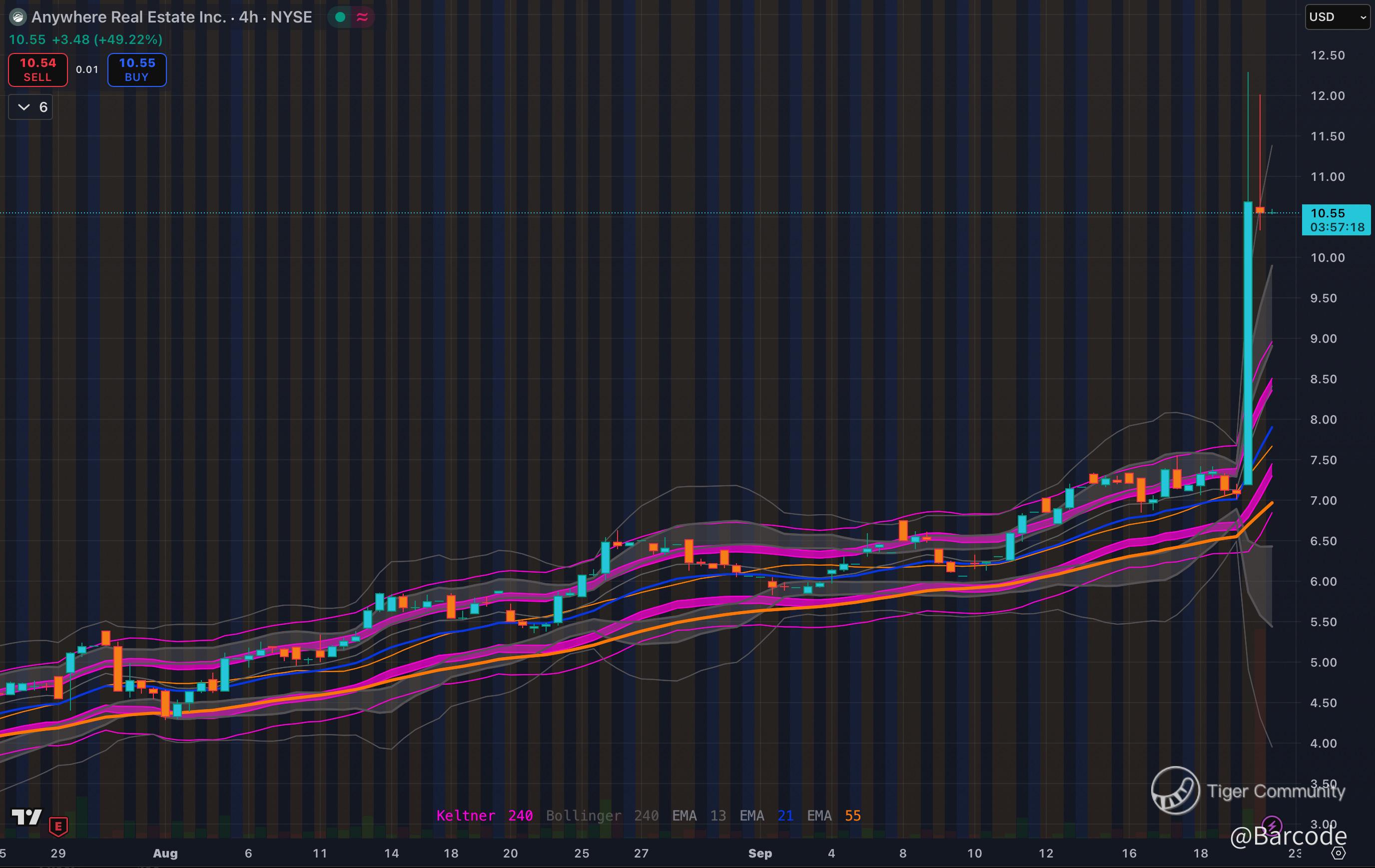 ⚡$HOUS ripping +57% on the $COMP buyout really caught my eye, that’s the kind of re-rating move you don’t see often. The parabolic push from $7 into the $12s reminds me of how $RKT spiked after deal news, and holding double digits will be the real test of staying power.