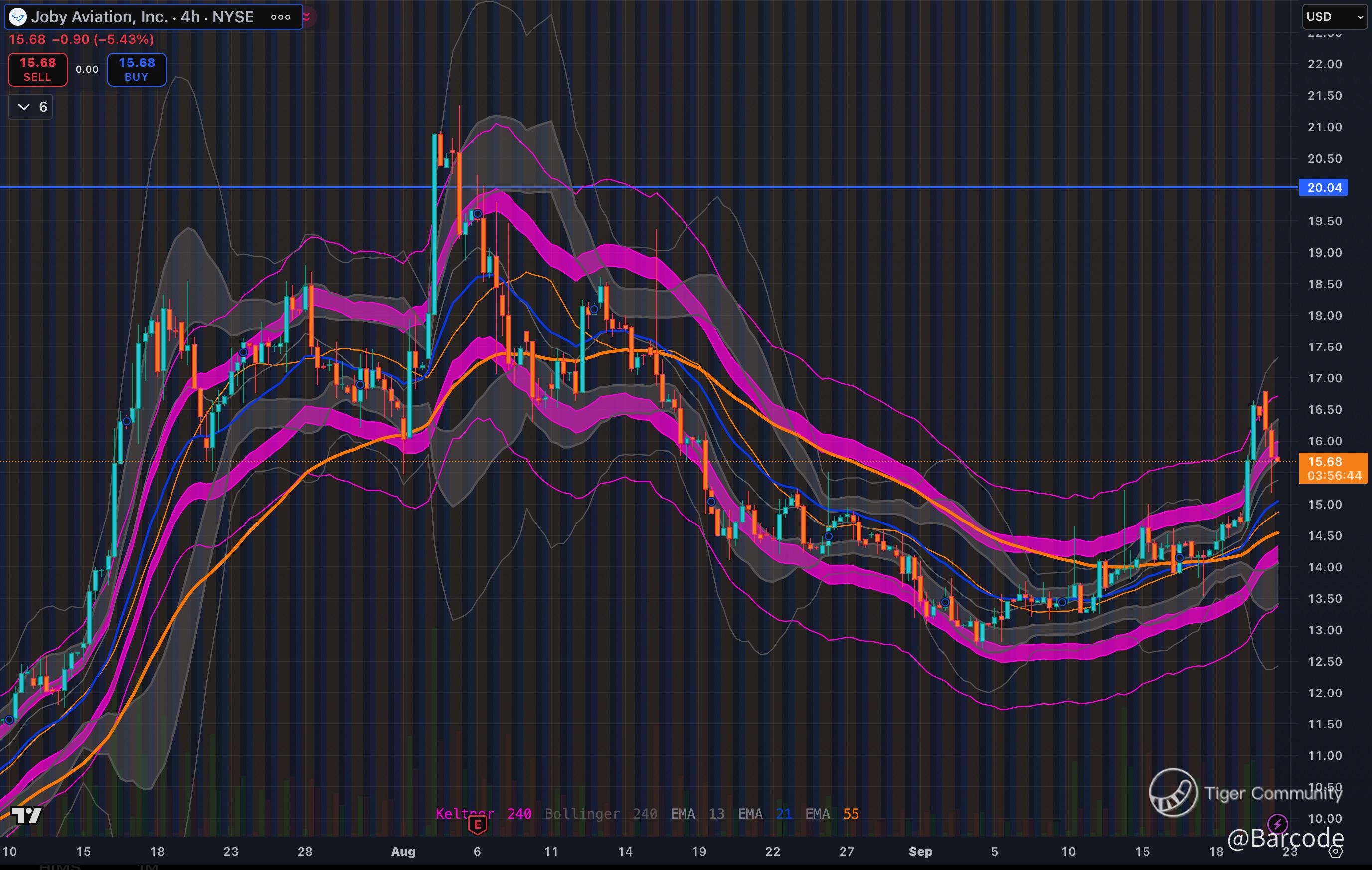 ✈️Your take on $JOBY battling the $16–17 zone resonates, especially with the 50DMA right there. I’ve seen $TSLA coil under similar resistance before its big expansions, and the way volatility bands are tightening tells me the next directional move could be explosive.