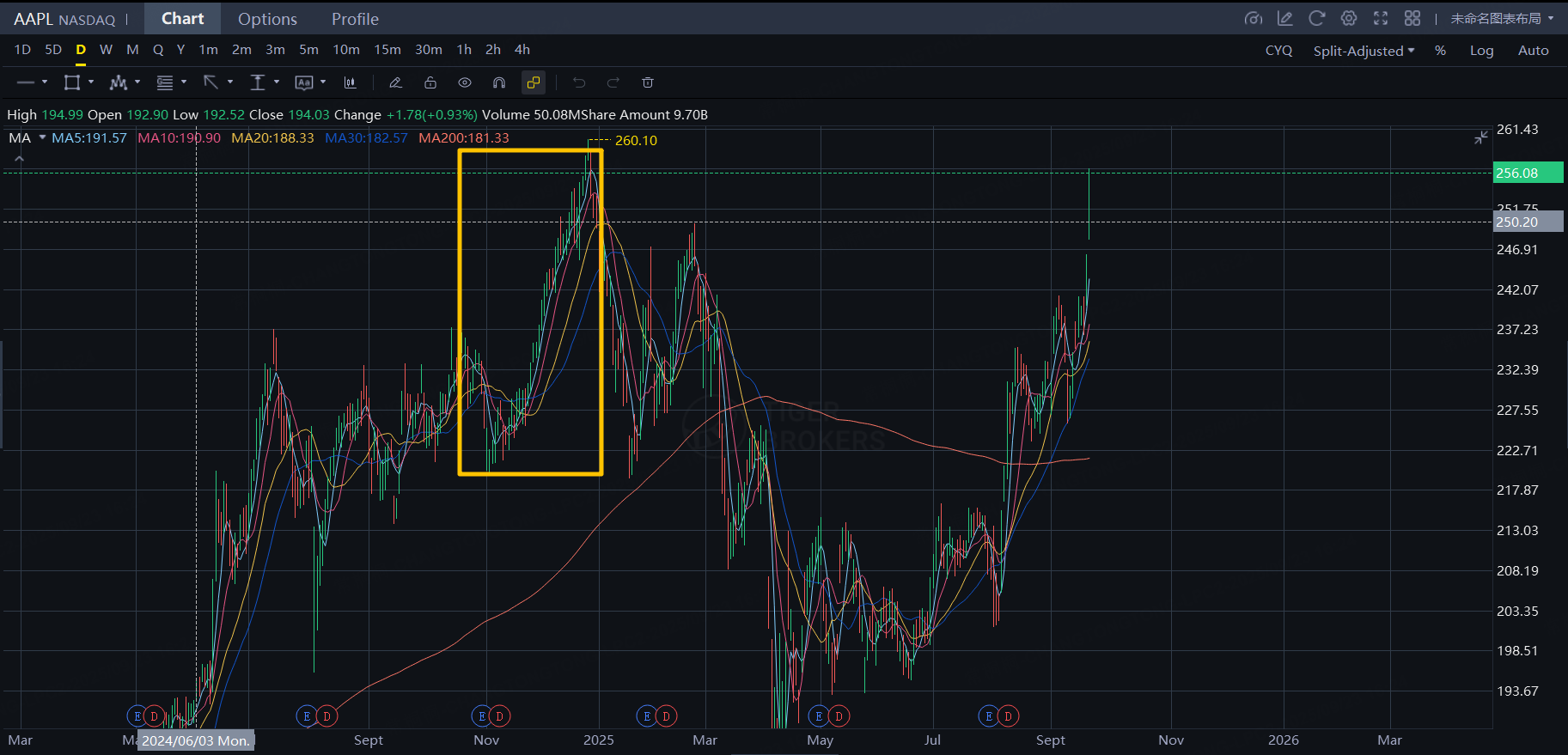 與此同時,蘋果股價上漲4.31%至256.08美元,推動其市值接近4萬億美元,再創年度新高。iPhone 17系列需求超預期,促使Wedbush將目標價上調至$310.
