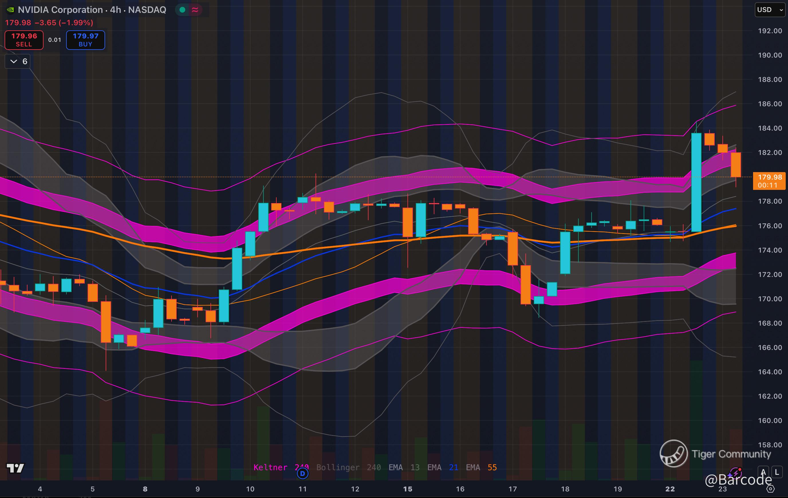 📈 Nvidia, by contrast, shows hesitation at $180 after a sharp spike; Keltner/Bollinger compression suggests indecision, possibly awaiting earnings catalysts. Meanwhile, NAURA is sending a different message: China is gearing up for self-sufficiency, and the market is rewarding the key enablers.