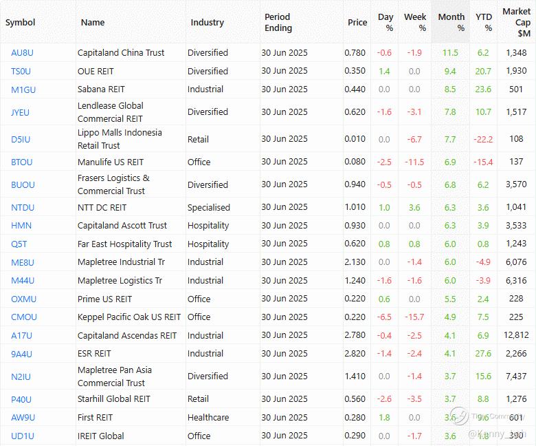 Previous chart on FTSE ST REIT index can be found in the last post: Singapore REIT Fundamental Comparison Table on August 23rd, 2025.