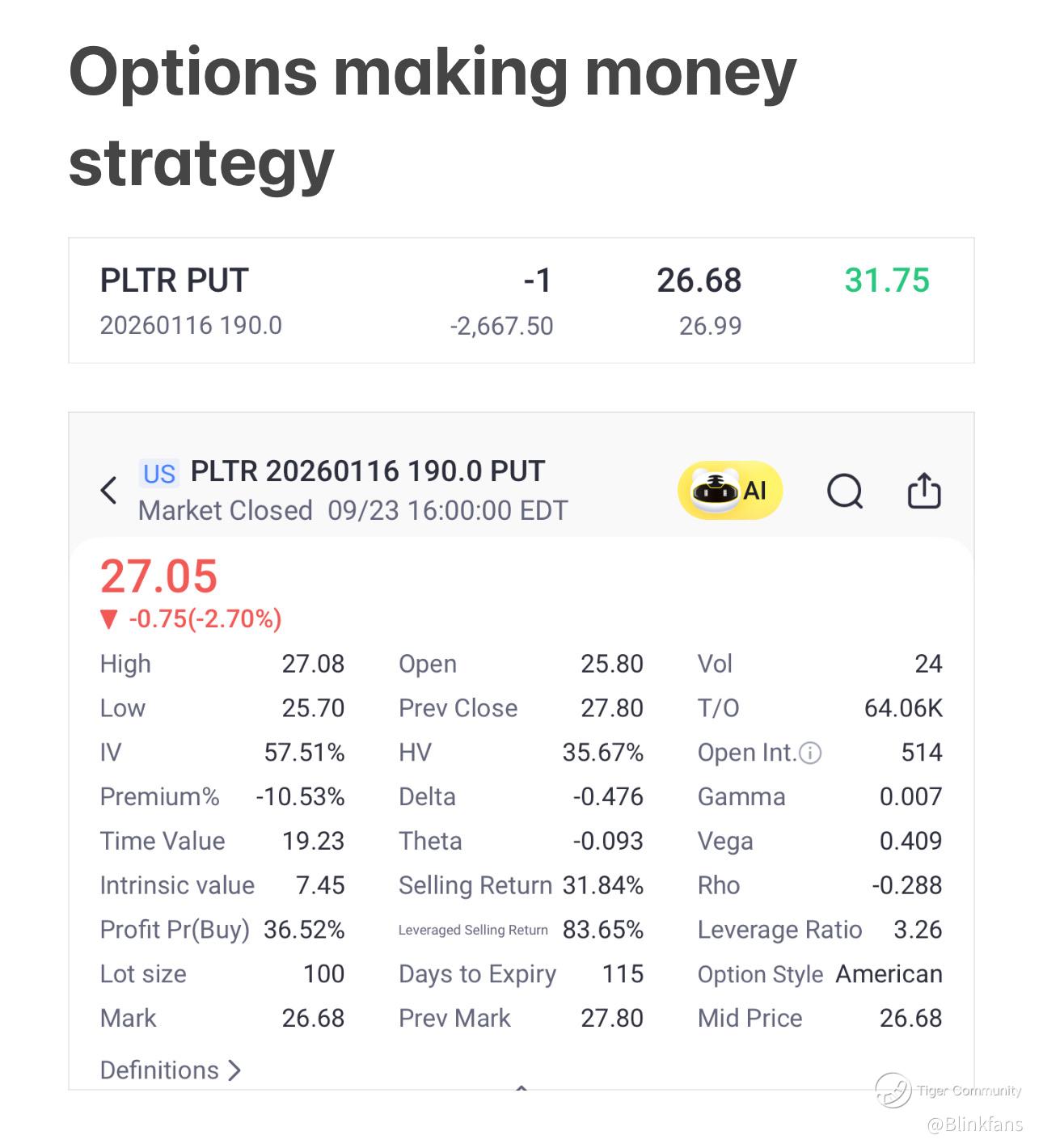 Options have always been one of my favorite tools in the market. Instead of just buying and holding shares, I like creating opportunities to earn consistent income while positioning myself to potentially buy my favorite stocks at a discount. Recently, I sold a Palantir (PLTR) 190 Put expiring on January 16, 2026. This trade highlights how I use theta decay, delta probabilities, and cash-secured preparation to manage risk while generating returns.