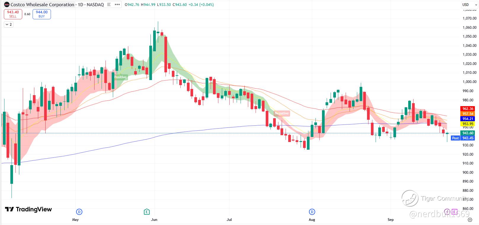Mixed Results: A scenario where Costco beats on earnings but shows a slowdown in comparable sales or cautious guidance could lead to a negative market reaction. The premium valuation makes the stock vulnerable to any hint of a growth deceleration. In this case, a short-term short position could be considered, but be prepared for swift reversals.