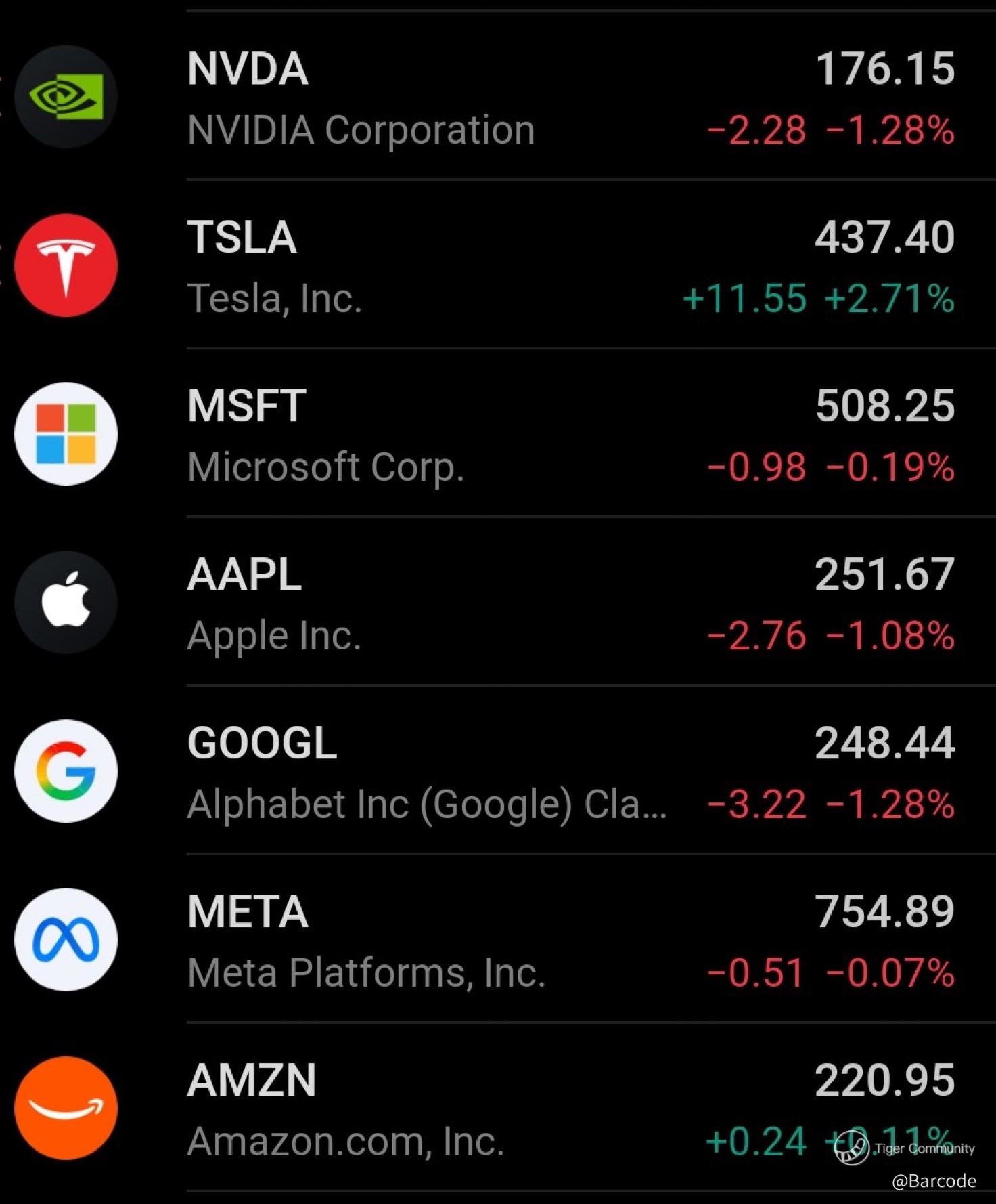 Tesla is outperforming while most of the Mag 7 are lagging. $TSLA is trading around +2.71% at 437.40, contrasting with $NVDA (-1.28%), $AAPL (-1.08%), and $GOOGL (-1.28%). $AMZN is only marginally green at +0.11%. That live divergence matters; when Tesla leads while peers slip, it signals active rotation into the name and reinforces its role as the momentum spearhead of the group.