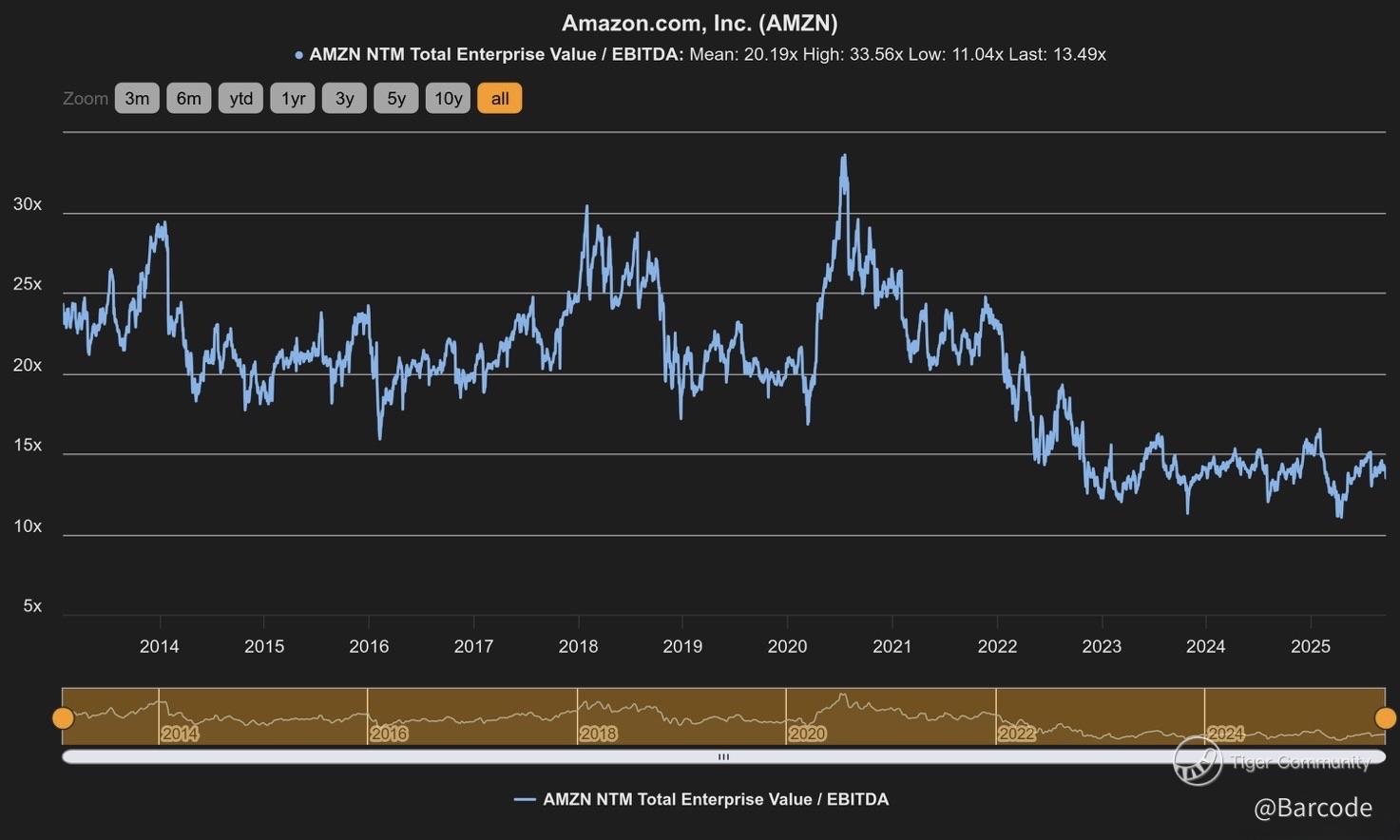 I believe $AMZN keeps getting cheaper and cheaper, a highly underappreciated company. The weekly chart shows a clear double top with support at $200, resistance at $240, and probability-weighted targets pointing toward $190. Historical precedent suggests compression at these levels often resolves lower, though my base case sees stabilisation near $200. They are going to own the largest army of robots. Upside looks capped near $240 unless valuation rerates from its current 13.49x EV/EBITDA.