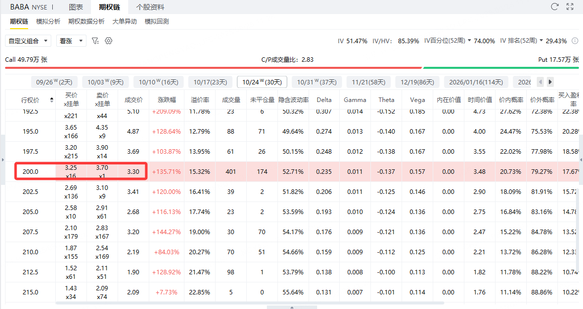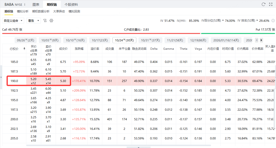 In view of Alibaba's booming market, option traders who want to hedge in the short term can consider the bear market bullish spread strategy.
