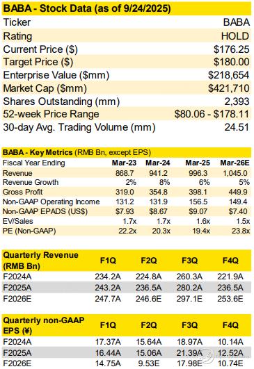 $Alibaba(BABA)$ (Alibaba to HOLD from BUY) - View on the mid- to long-term trajectory of Alibaba’s AI, cloud, and platform investments remains intact while lifting price target to $180 - Tiger Research