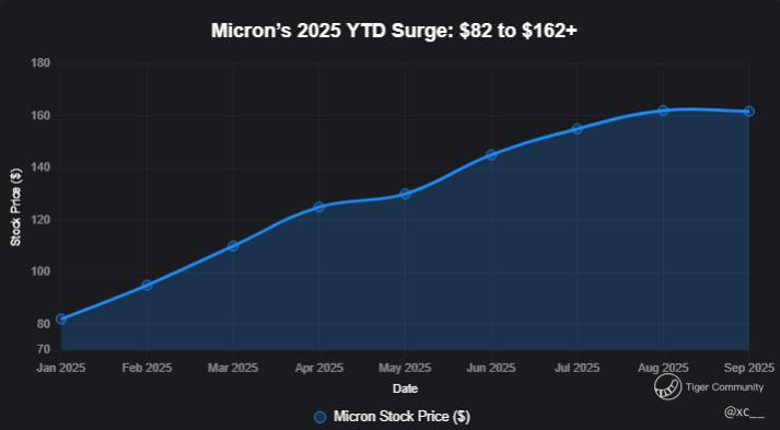 But here's the gut punch: shares dipped 2.5% to $161.71 post-earnings, barely budging from pre-report highs. After a blistering YTD surge—up 96% from January's $82 lows—this flatline screams "priced in." The rally baked in every whisper of AI tailwinds, from HBM3E ramps to automotive edge computing deals. Traders rotated out on profit-taking, with tech heavyweights like NVDA cooling off amid broader market jitters. Yet, dark pool flows topped $1 billion in notional value yesterday—big money sniffing value, not exhaustion. If this beat feels "expected," it's because Micron's become the AI proxy everyone chases, but the real question is sustainability.